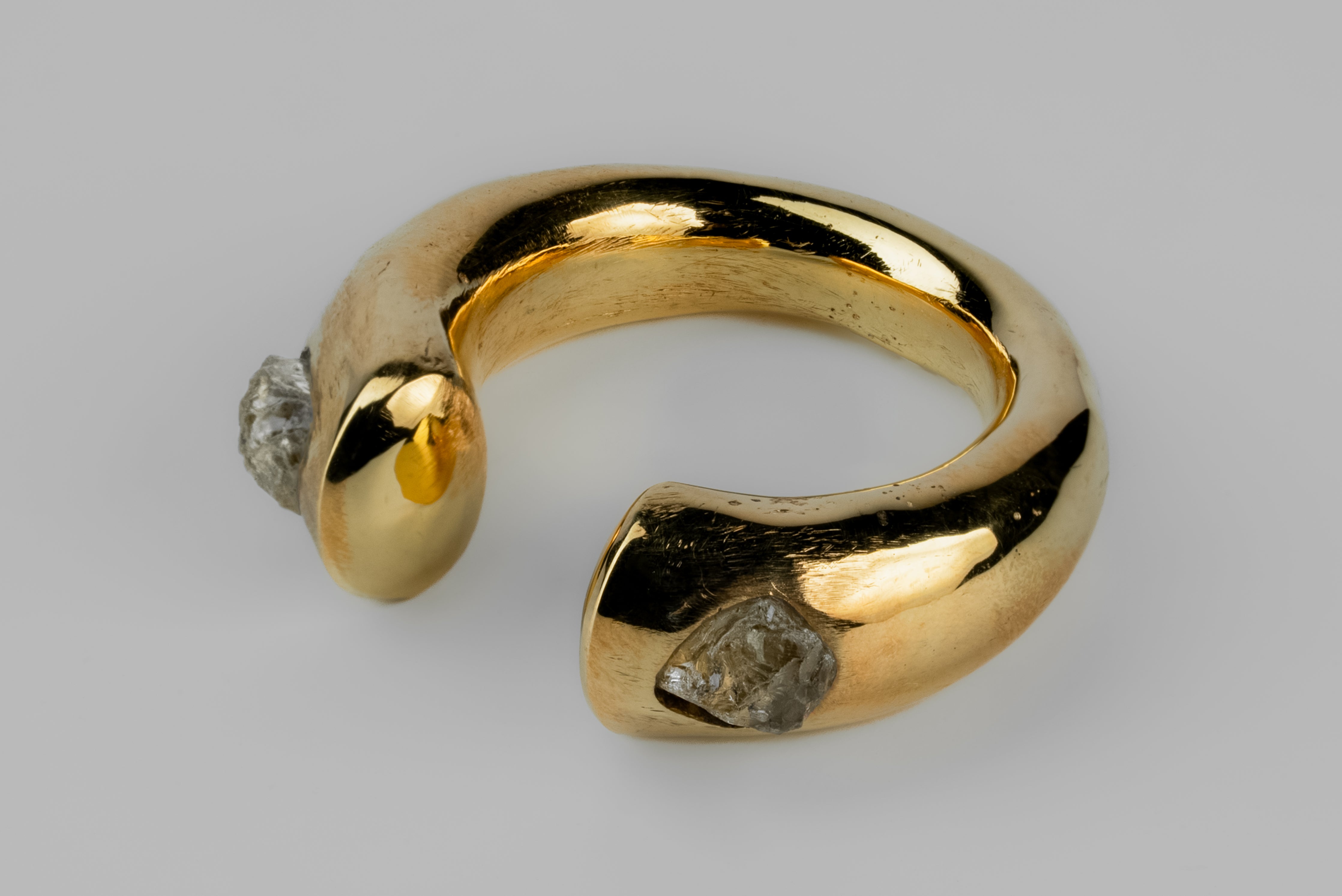 We use facet-grade rough gemstones which means that the traditional intention of this rough material is cut faceted stones. This assures the highest quality material while maintaining our aversion to classical jewelry norms.