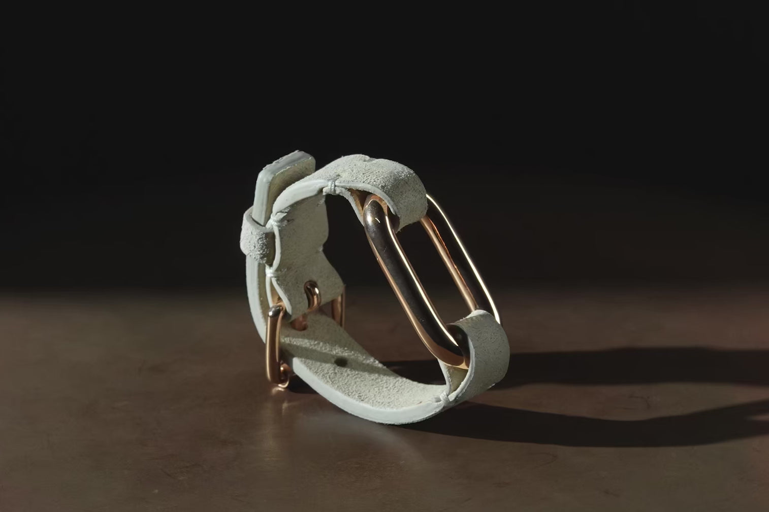 | Colors: | YMA: Sterling Bright Rose. sterling silver substrate, polished and electroplated with 18k rose gold. FLE: Natural Buffalo leather. |