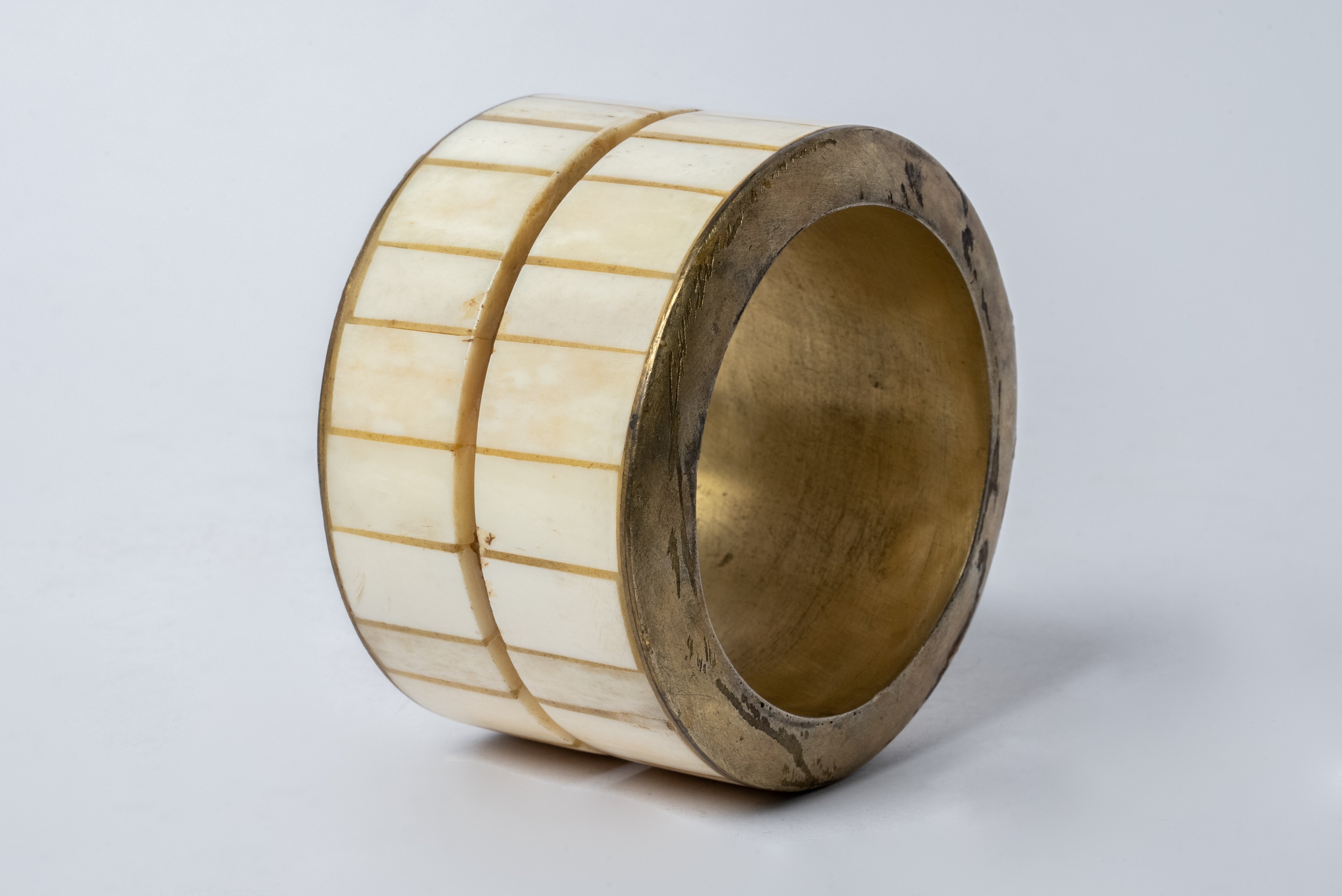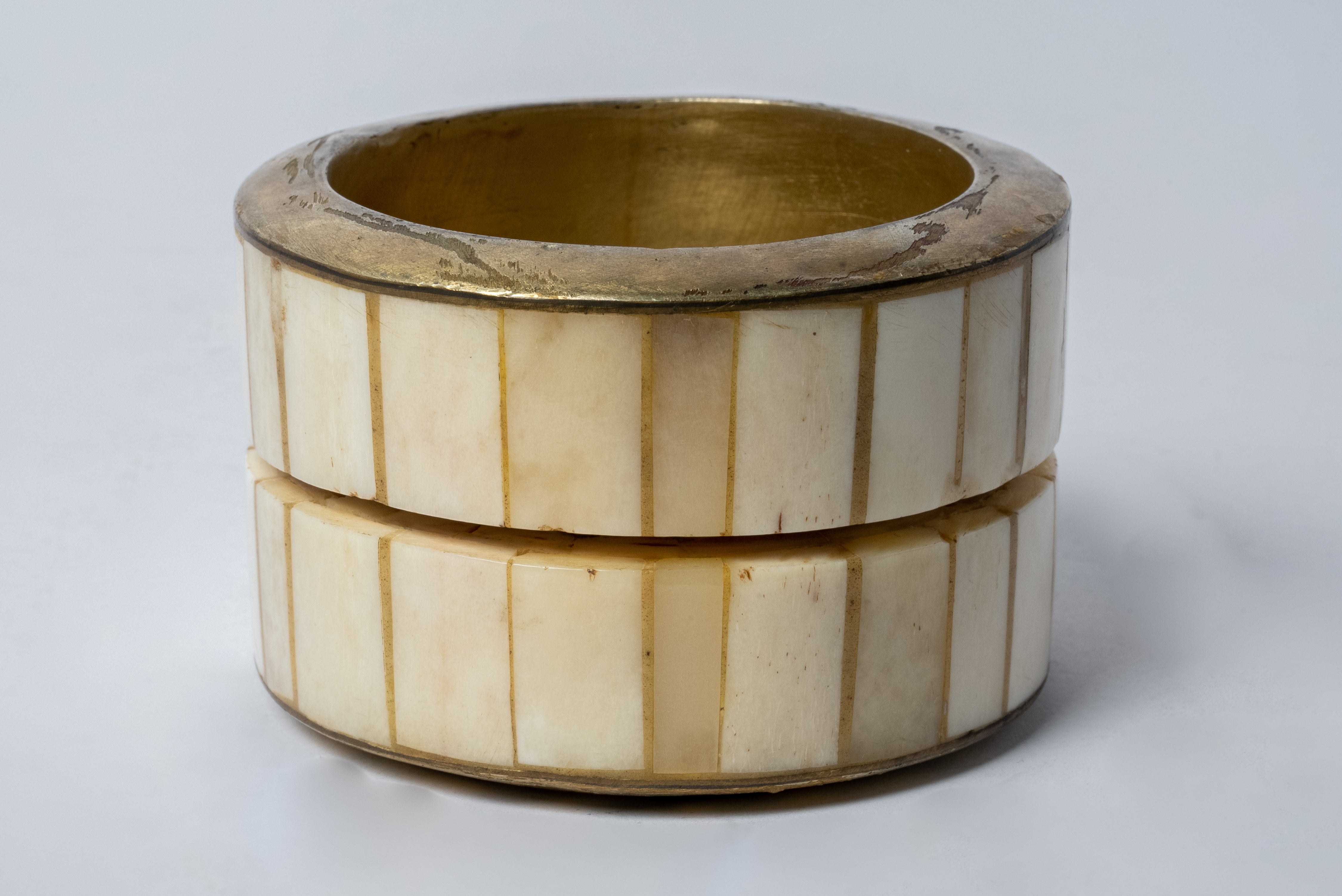 | Colors: | AG: Acid Gold. Brass substrate is electroplated with 18k gold and then dipped into acid to create the subtly destroyed surface. The concentration of the plating solution, air temperature and time in the acid bath all play integral roles in the final result and exist in a delicate balance. No two items are the same and these nuances / variations should be seen as a characteristic of the product. MB: Matte Bone. Water buffalo (Bubalus bubalis). The bone form is completely hand carved. |