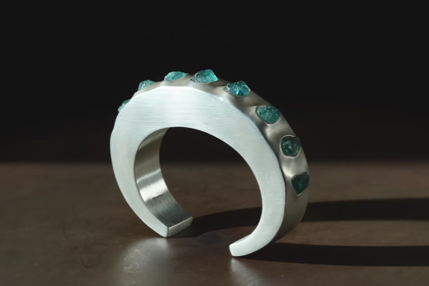 Crescent Bracelet (Terrestrial Surfaced, Neon Apatite, 15mm, AS+MA+NAPA)