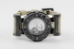 P4—FOB Watch #8315 (Case [Mega Pavé], Straight Strap [Studs], Silver Skeleton, KA+DIA-KA-FLE)