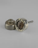 | Colors: | DA10KW: Dirty 10K White Gold Skin. Dirty sterling silver (acid treated) with fused layer of 10K white gold DIA: Rough Diamond. The stones used in this item are cuts of diamond material that are removed from a larger chunk of diamond as they are attempting to get to the perfect diamond in the center. Each stone fragment and shape are absolutely unique. |