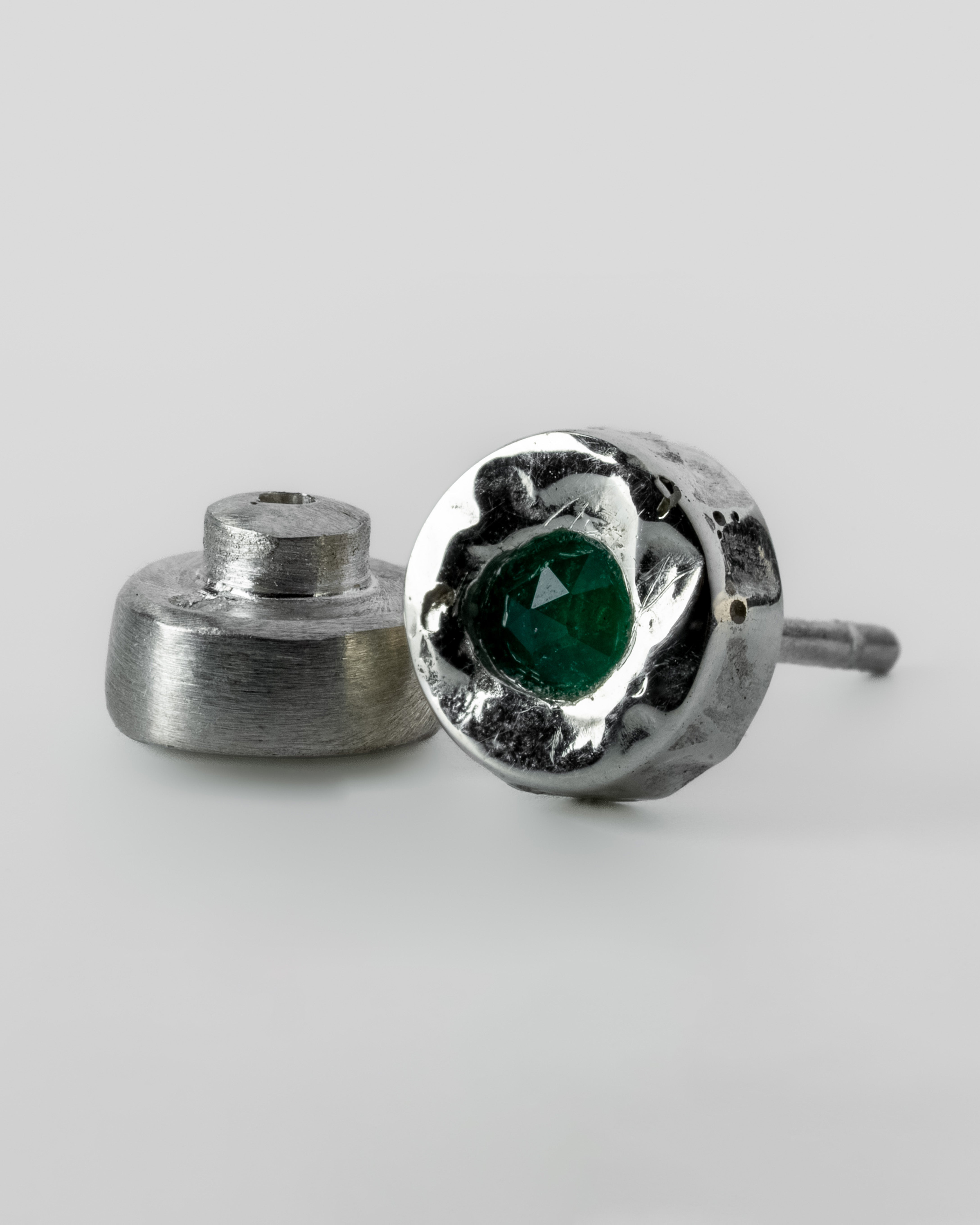| Colors: | MA10KW: Matte 10K White Gold Skin. Matte Sterling Silver with fused layer of 10K white gold EMER: Emerald Faceted Slab. Panjshir Valley, Afghanistan |