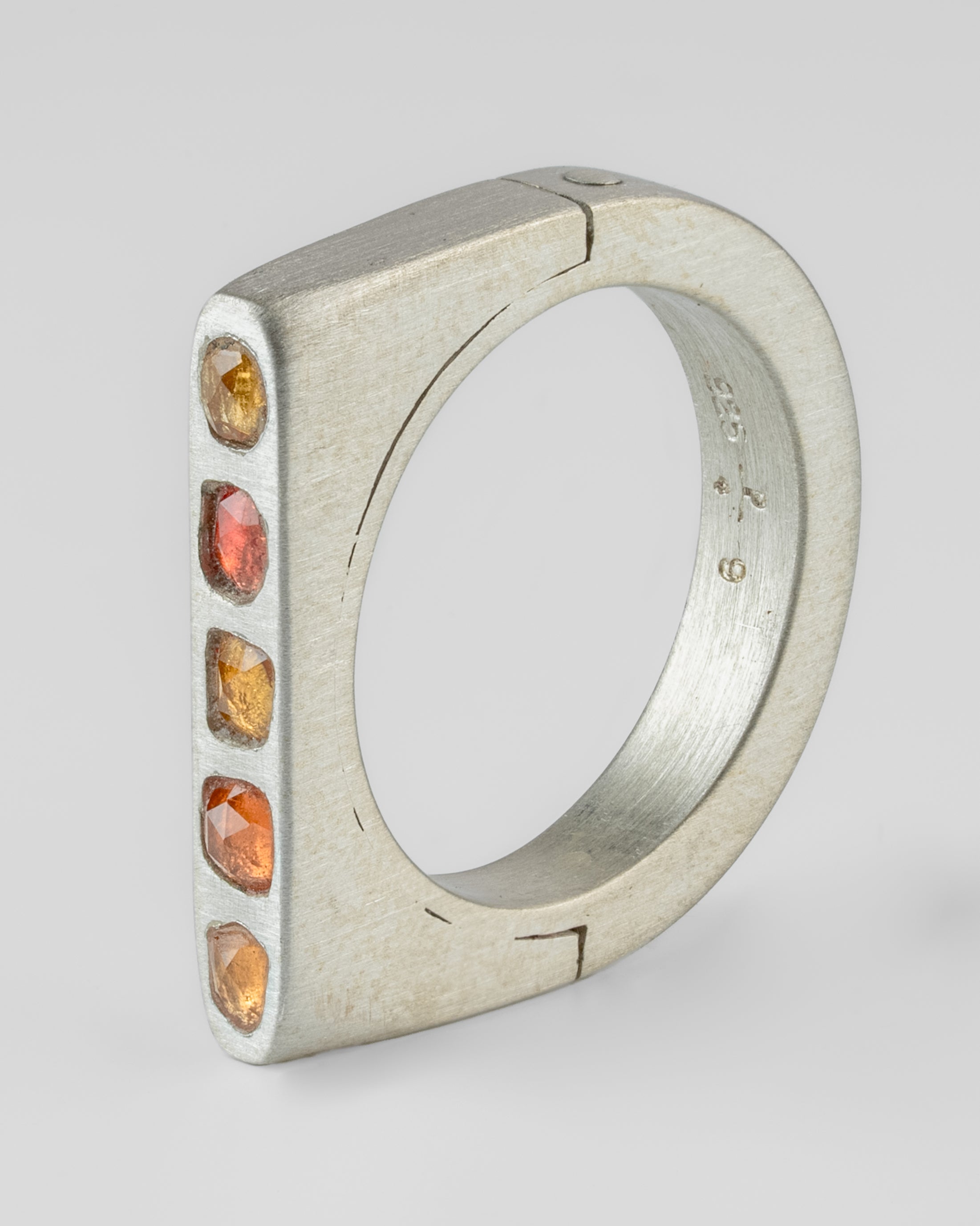 | Colors: | MA: Matte Sterling Silver. Sanded at 320 grit OSAF: Orange Sapphire Slab (Faceted). |