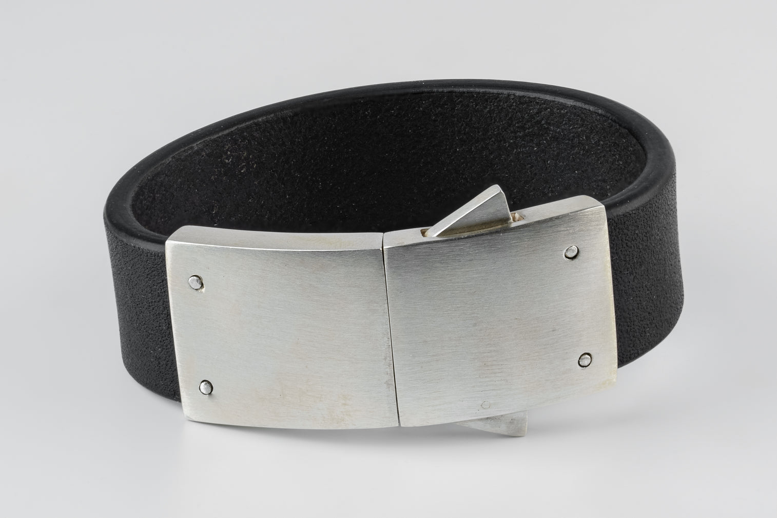 | Colors: | BLK: Black Buffalo leather. MA: Matte Sterling Silver. Sanded at 320 grit |