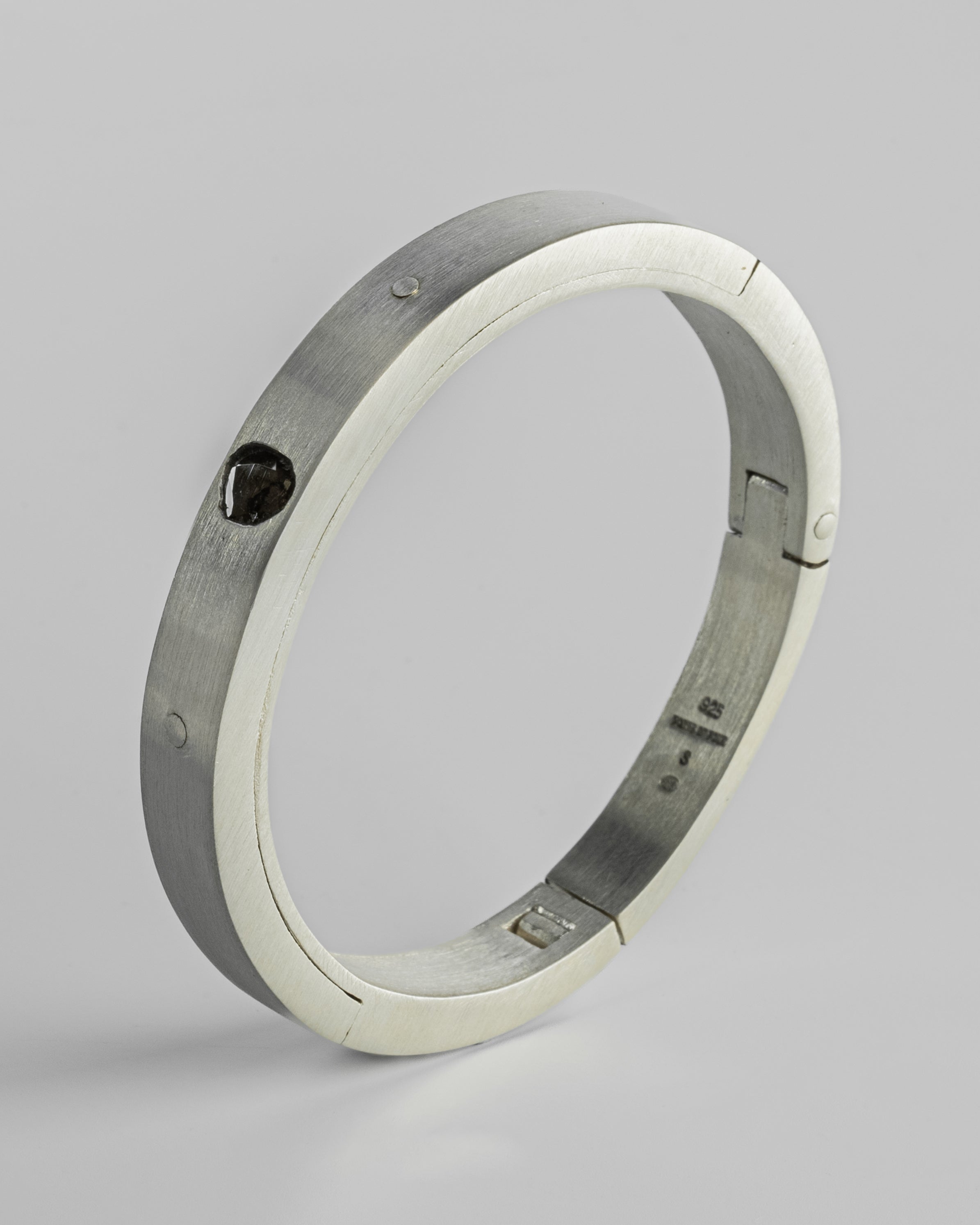 | Colors: | MA: Matte Sterling Silver. Sanded at 320 grit DIA: Rough Diamond. The stones used in this item are cuts of diamond material that are removed from a larger chunk of diamond as they are attempting to get to the perfect diamond in the center. Each stone fragment and shape are absolutely unique. |