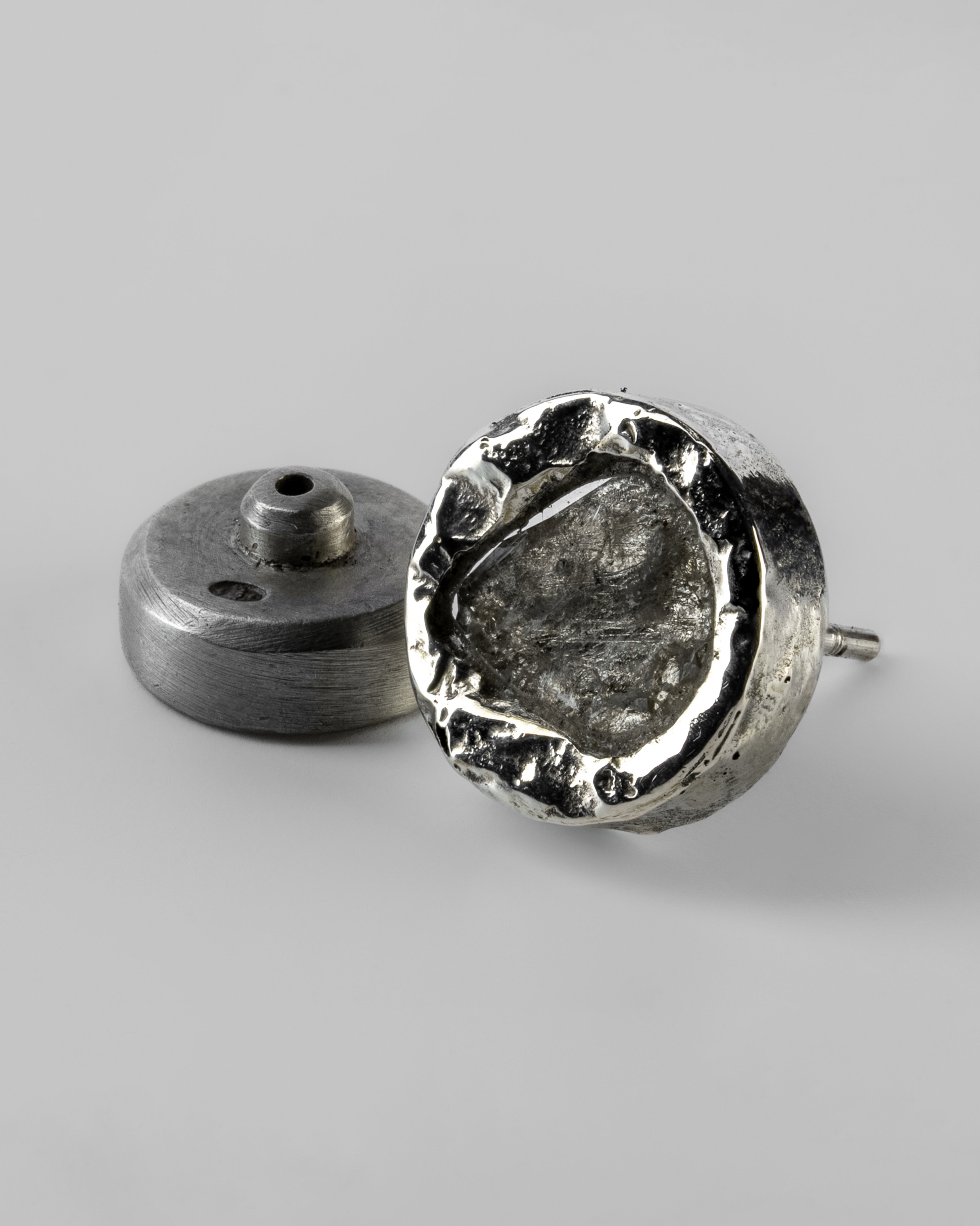 | Colors: | DA10KW: Dirty 10K White Gold Skin. Dirty sterling silver (acid treated) with fused layer of 10K white gold DIA: Rough Diamond. The stones used in this item are cuts of diamond material that are removed from a larger chunk of diamond as they are attempting to get to the perfect diamond in the center. Each stone fragment and shape are absolutely unique. |