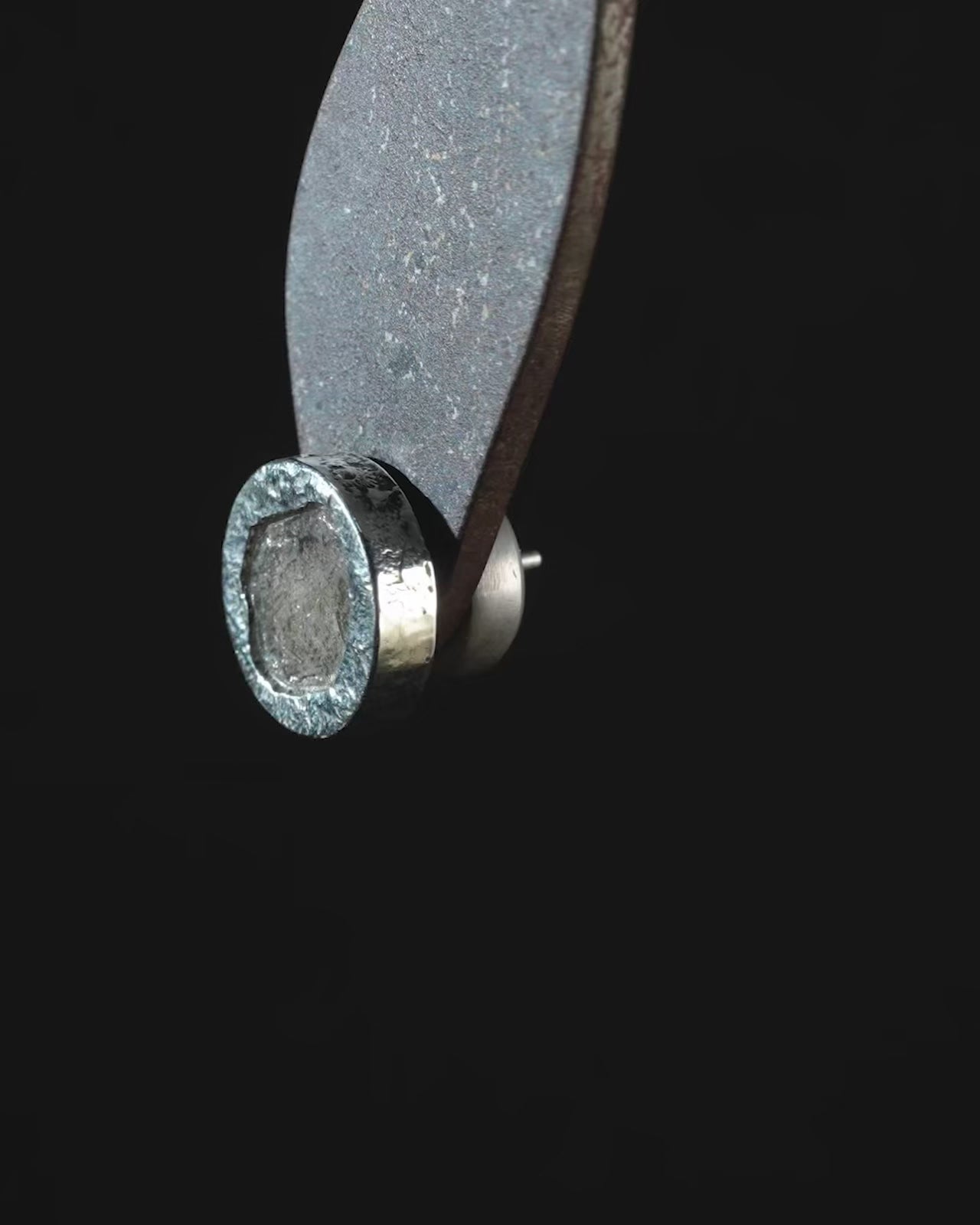 | Colors: | DA10KW: Dirty 10K White Gold Skin. Dirty sterling silver (acid treated) with fused layer of 10K white gold DIA: Rough Diamond. The stones used in this item are cuts of diamond material that are removed from a larger chunk of diamond as they are attempting to get to the perfect diamond in the center. Each stone fragment and shape are absolutely unique. |