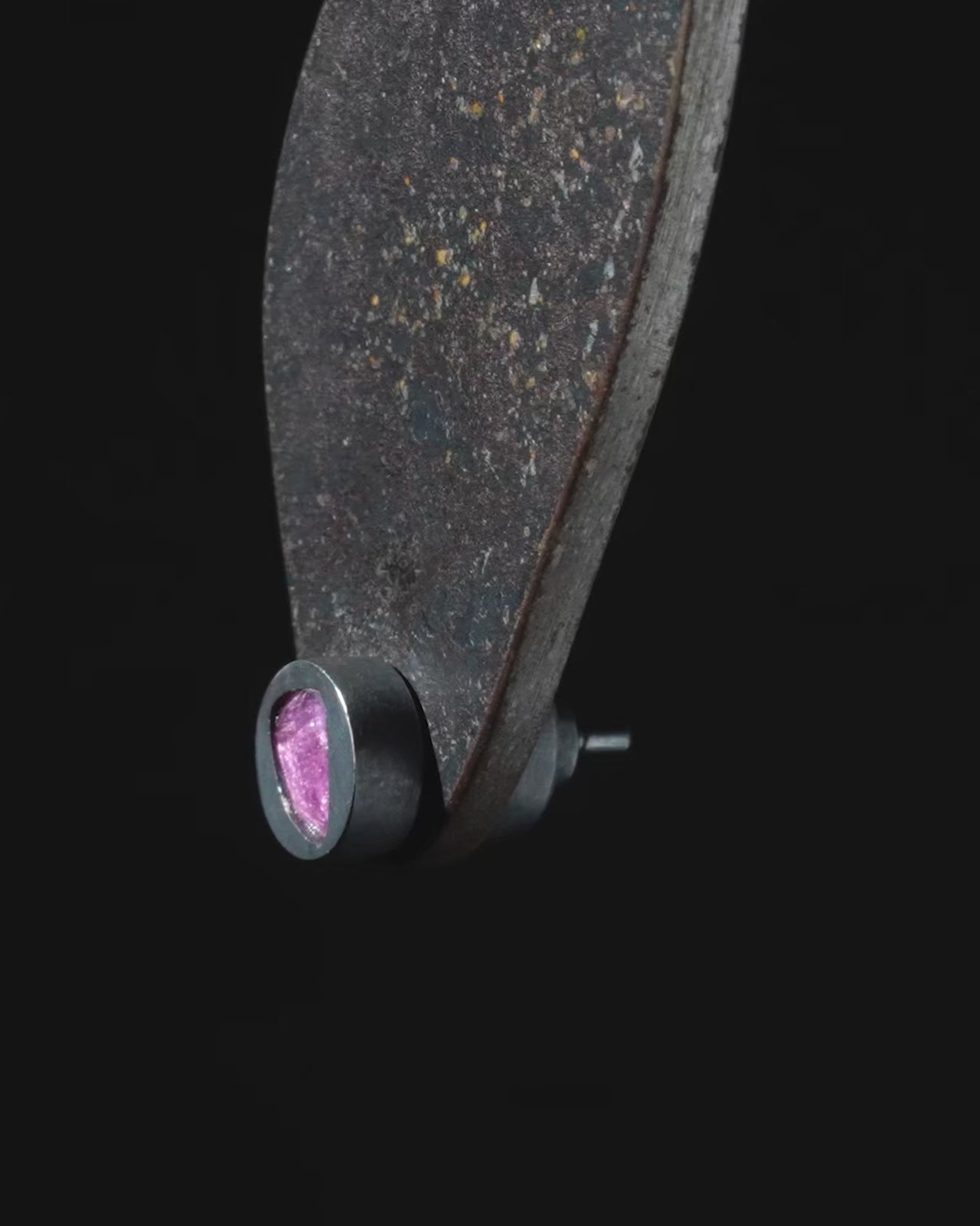 | Colors: | KA: Black Sterling. Black Sterling is a surface oxidation of sterling silver. This finish may fade over time, which can be considered an enhancement. Please note that Black Sterling tends to appear darker in photograph than in person. The finish can be re-blackened easily with Liver of Sulfur, available at most jewelry suppliers. RUB: Rough Ruby (Faceted). |