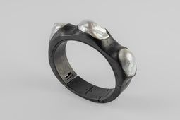 Colors: KA: Black Sterling. Black Sterling is a surface oxidation of sterling silver. This finish may fade over time, which can be considered an enhancement. Please note that Black Sterling tends to appear darker in photograph than in person. The finish can be re-blackened easily with Liver of Sulfur, available at most jewelry suppliers. WPRL: White Pearl. Baroque tear-dropped saltwater pearls. These are wild and natural bead specimens.