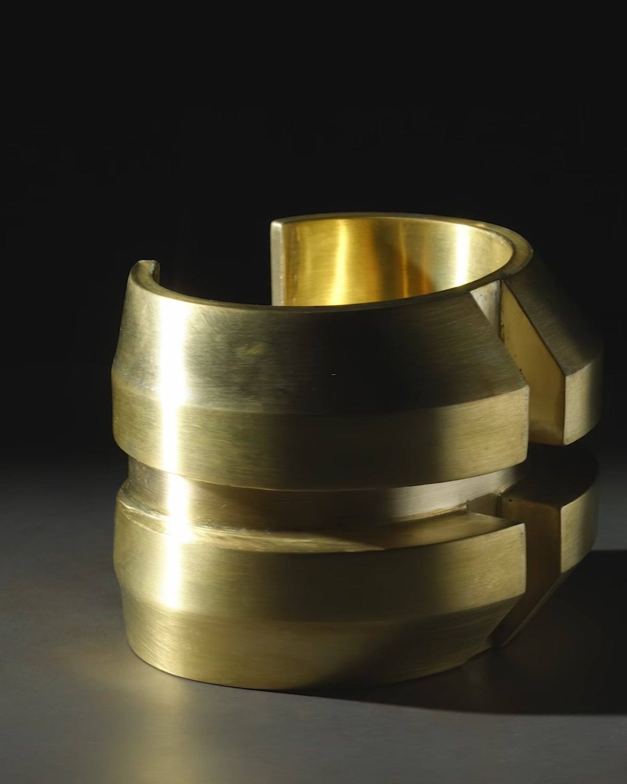 This piece is 100% hand fabricated from metal plate; cut into sections and soldered together to make the hollow three dimensional form. If sterling silver, the sheet metal is made by hand. The silver is melted and rolled out into plate.