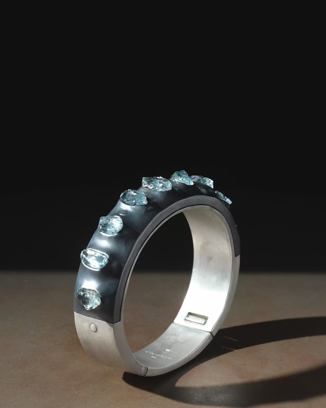 | Colors: | DA: Dirty Sterling. Sterling silver, dipped in acid to create a subdued surface. Results will never be identical, and this nuance / variation should be seen as a characteristic of the uniqueness of the product. KA: Black Sterling. Black Sterling is a surface oxidation of sterling silver. This finish may fade over time, which can be considered an enhancement. Please note that Black Sterling tends to appear darker in photograph than in person. The finish can be re-blackened easily with Liver of Sulfur, available at most jewelry suppliers. AQU: Aquamarine. |