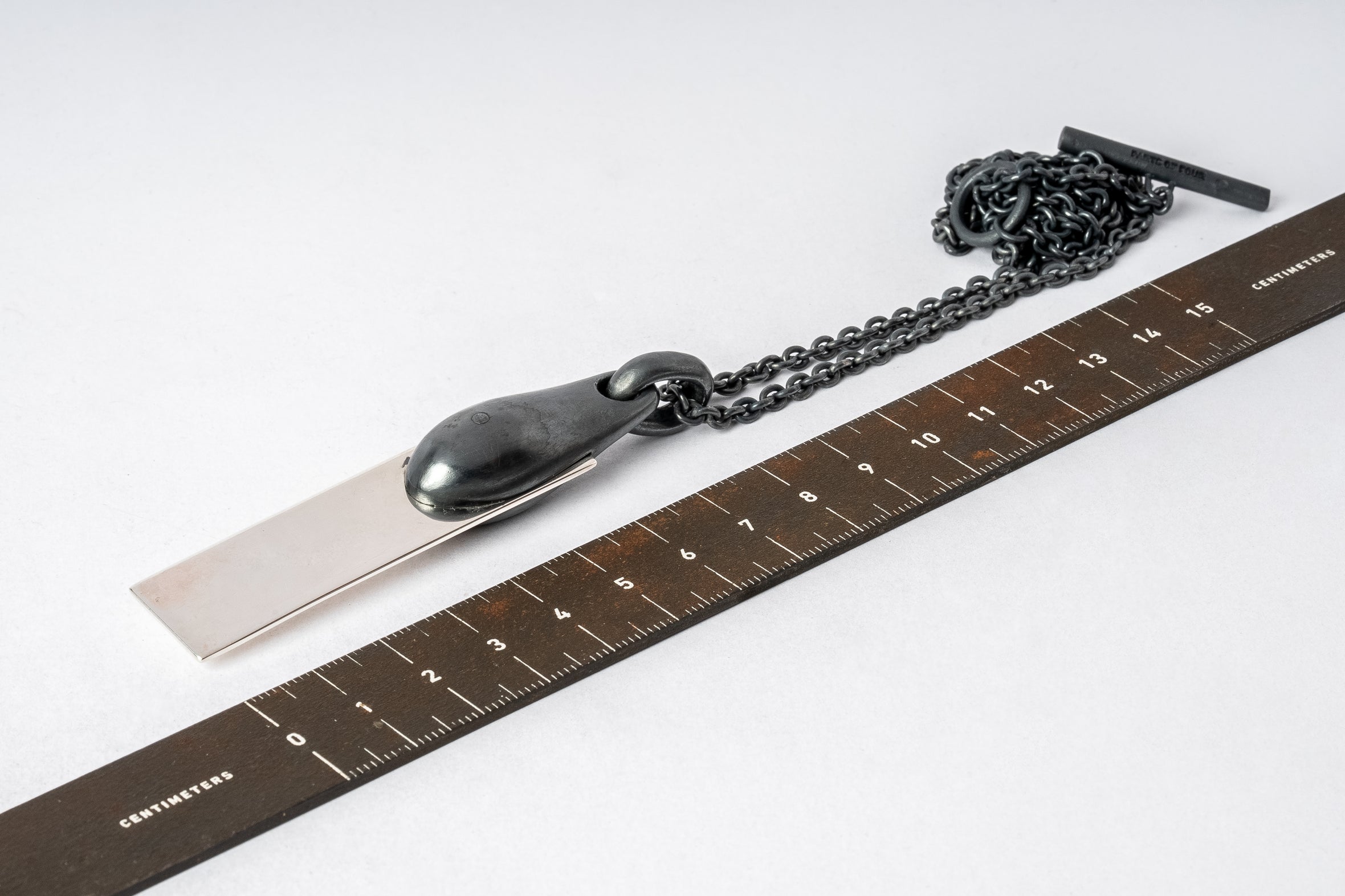 | Dimensions: | Pendant length (W × H): 14 mm × 85 mm Plate Length (W × H): 14 × 40 mm Chain length: 740 mm |