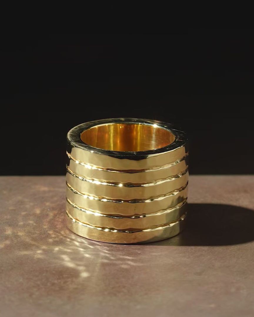 The patterns or motifs on this piece are created using acid etching. An item is painted with a resistant material and the motif is scratched into the surface by hand. The entire piece is then submerged in acid and the lines that were scratched away are eaten at by the acid and the surface that is painted is protected. The process is artisanal and imperfections should be expected and regarded as a unique characteristic to your specific piece.