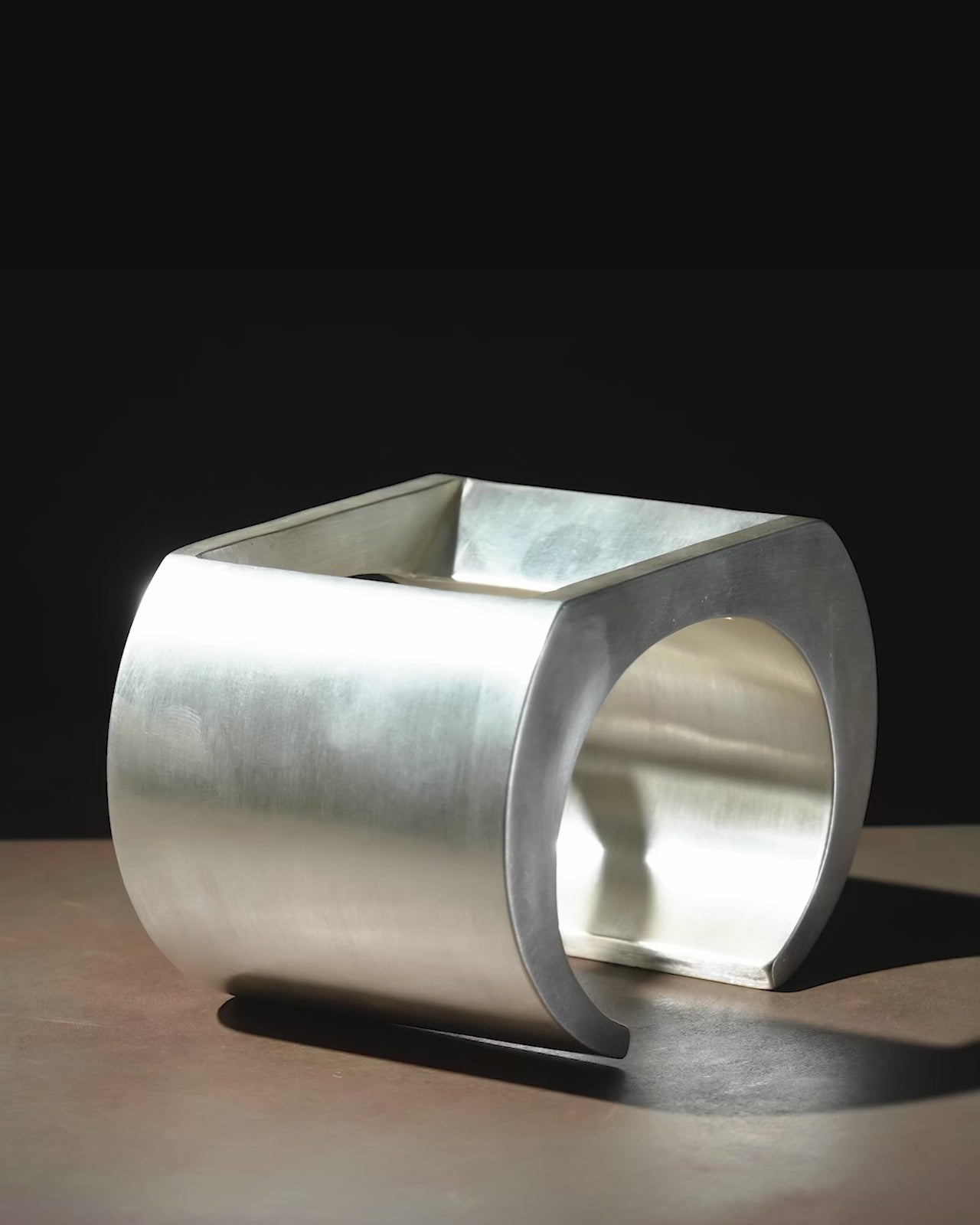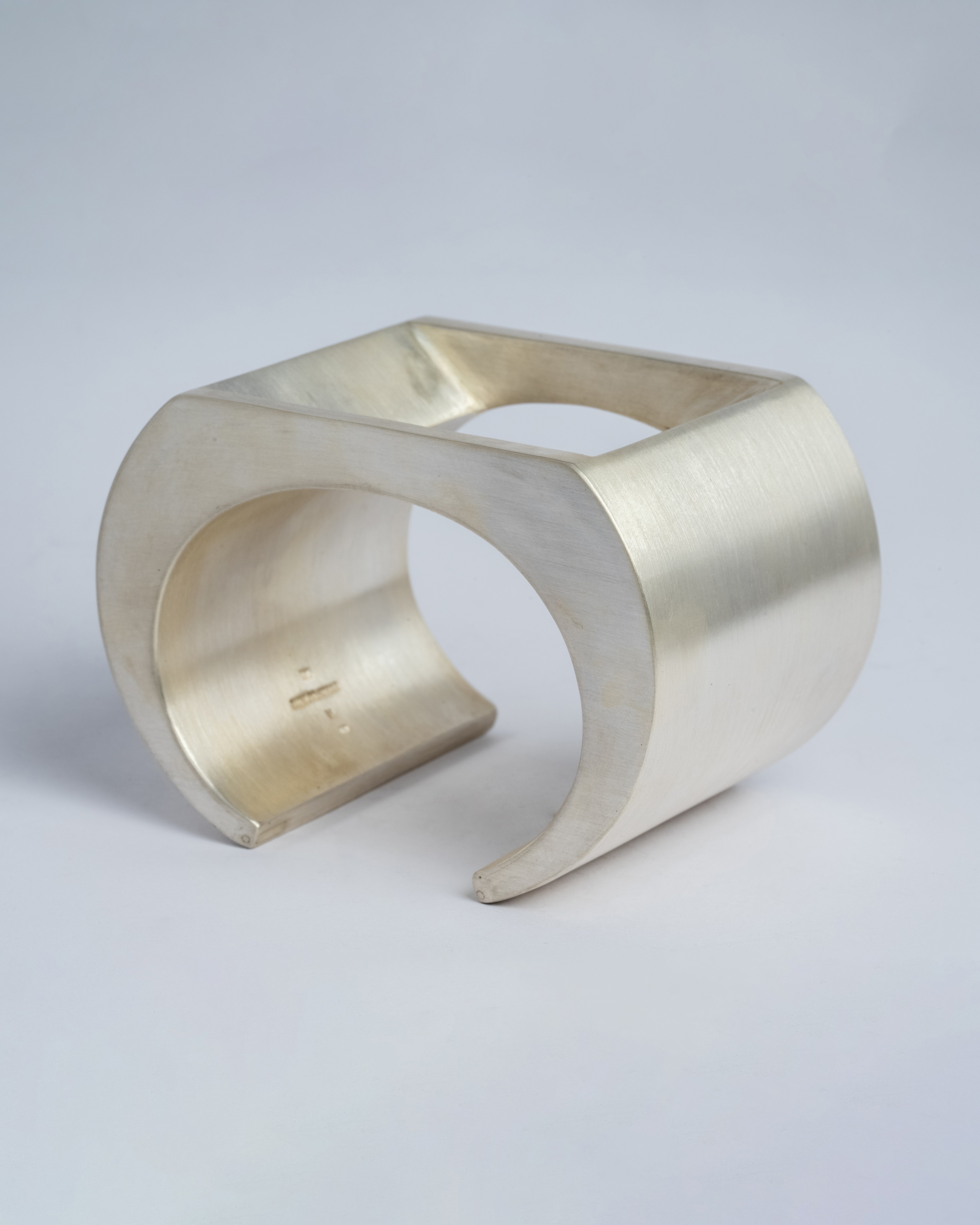 This piece is 100% hand fabricated from metal plate; cut into sections and soldered together to make the hollow three dimensional form. If sterling silver, the sheet metal is made by hand. The silver is melted and rolled out into plate.