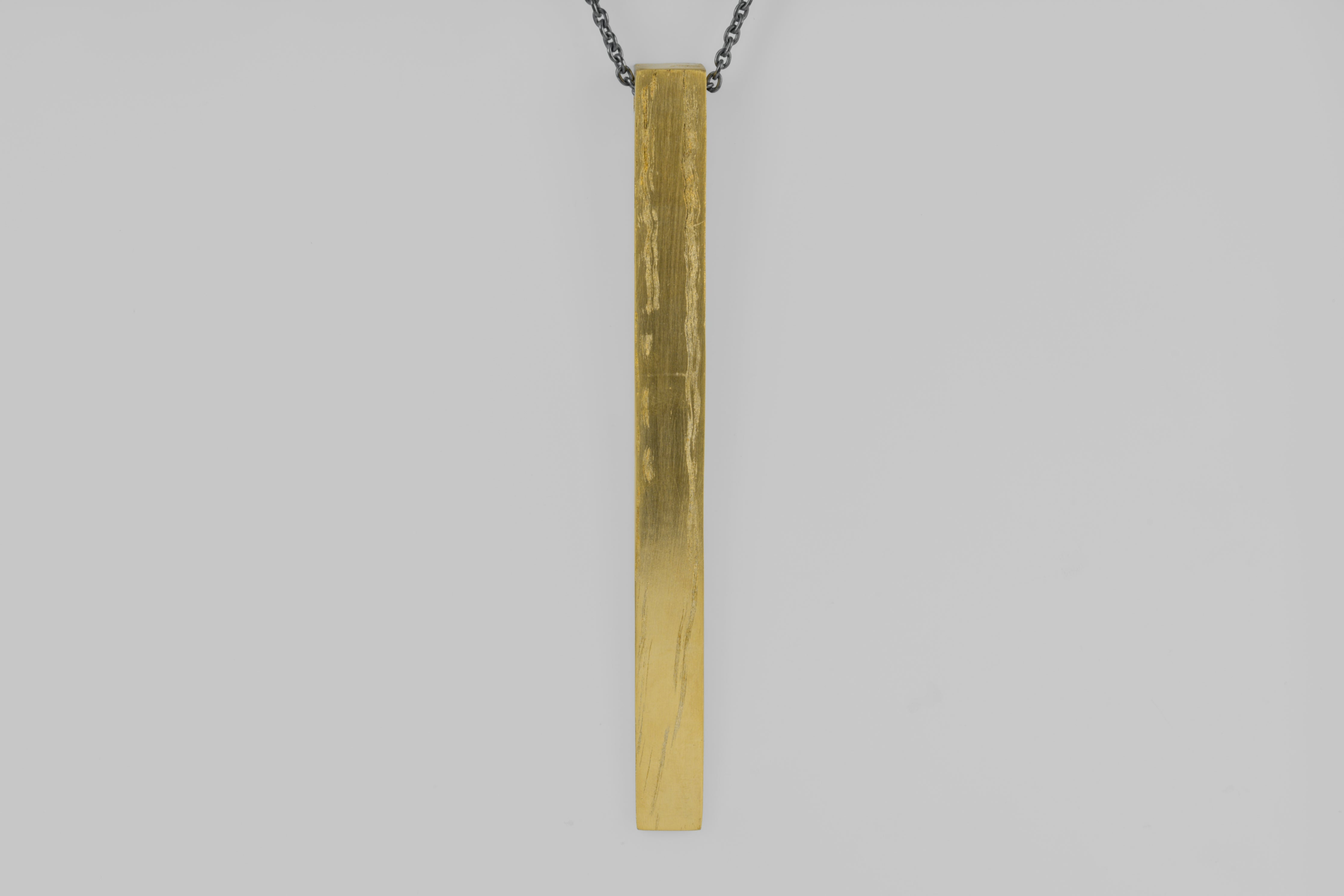 Colors: AG: Acid Gold. Brass substrate is electroplated with 18k gold and then dipped into acid to create the subtly destroyed surface. The concentration of the plating solution, air temperature and time in the acid bath all play integral roles in the final result and exist in a delicate balance. No two items are the same and these nuances / variations should be seen as a characteristic of the product. KA: Black Sterling. Black Sterling is a surface oxidation of sterling silver. This finish may fade over time, which can be considered an enhancement. Please note that Black Sterling tends to appear darker in photograph than in person. The finish can be re-blackened easily with Liver of Sulfur, available at most jewelry suppliers.