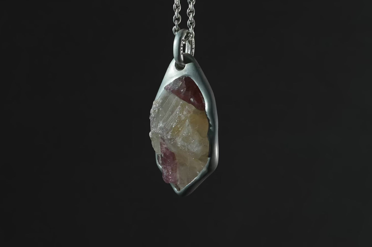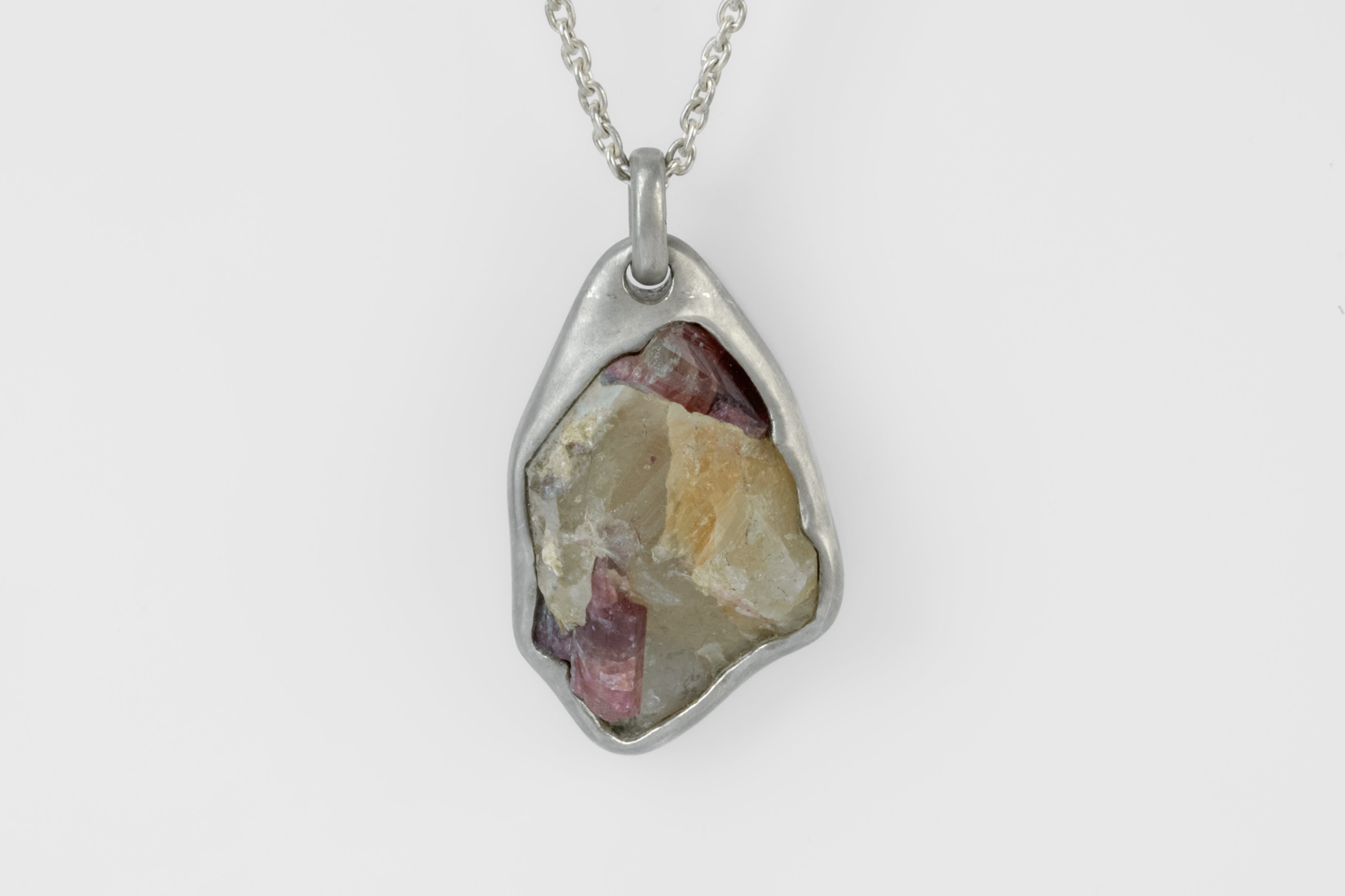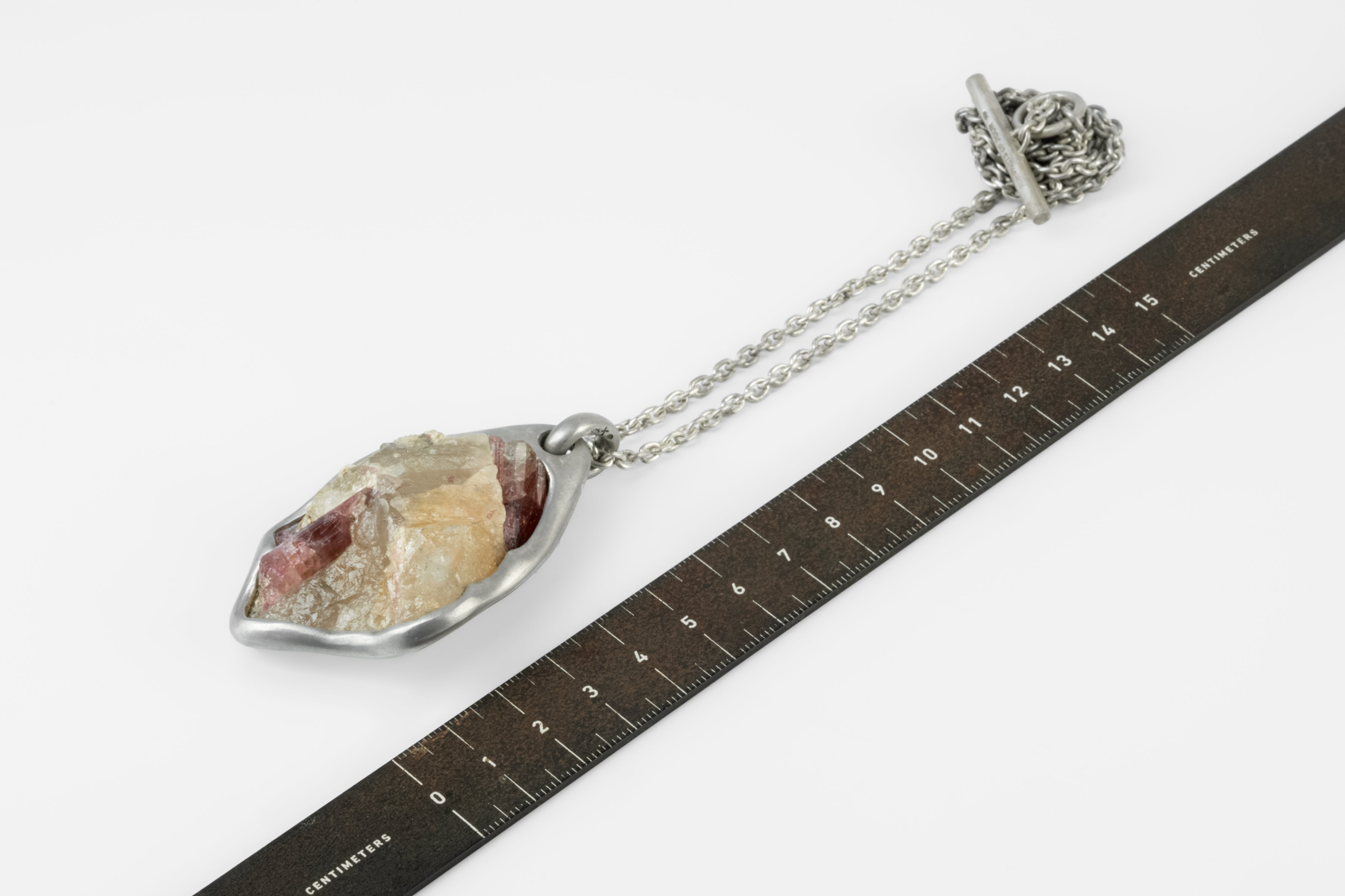 | Colors: | DA: Dirty Sterling. Sterling silver, dipped in acid to create a subdued surface. Results will never be identical, and this nuance / variation should be seen as a characteristic of the uniqueness of the product. RBL: Rubellite. Tourmlaine: Pink-Red |