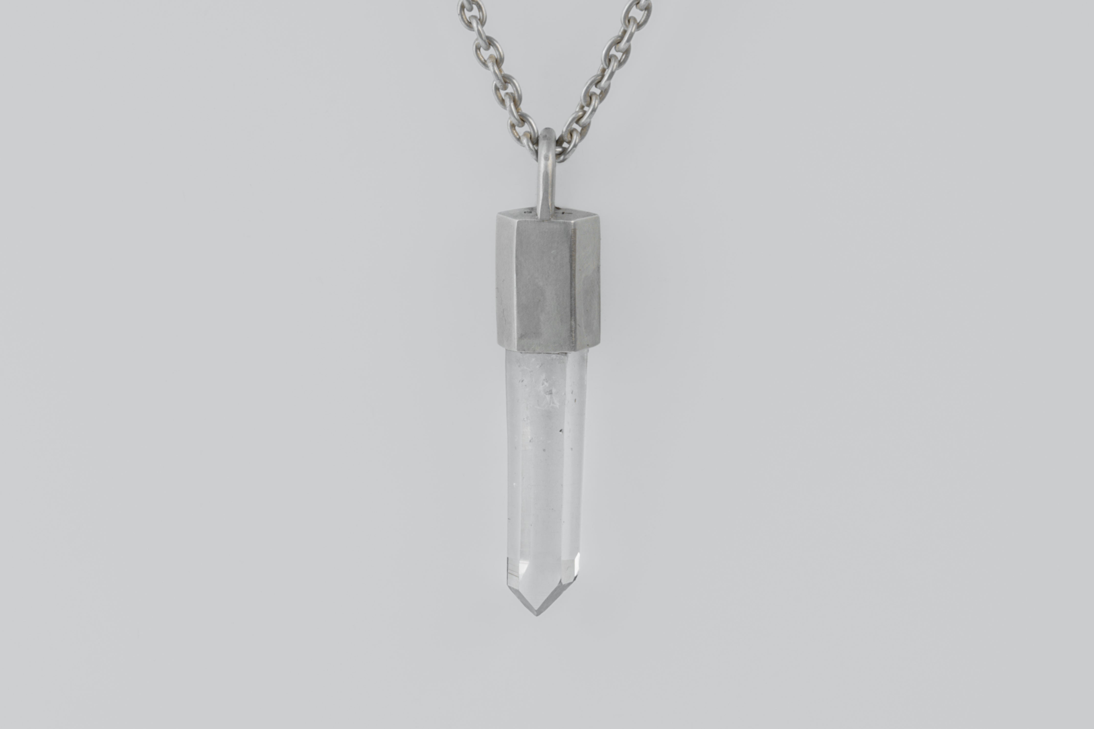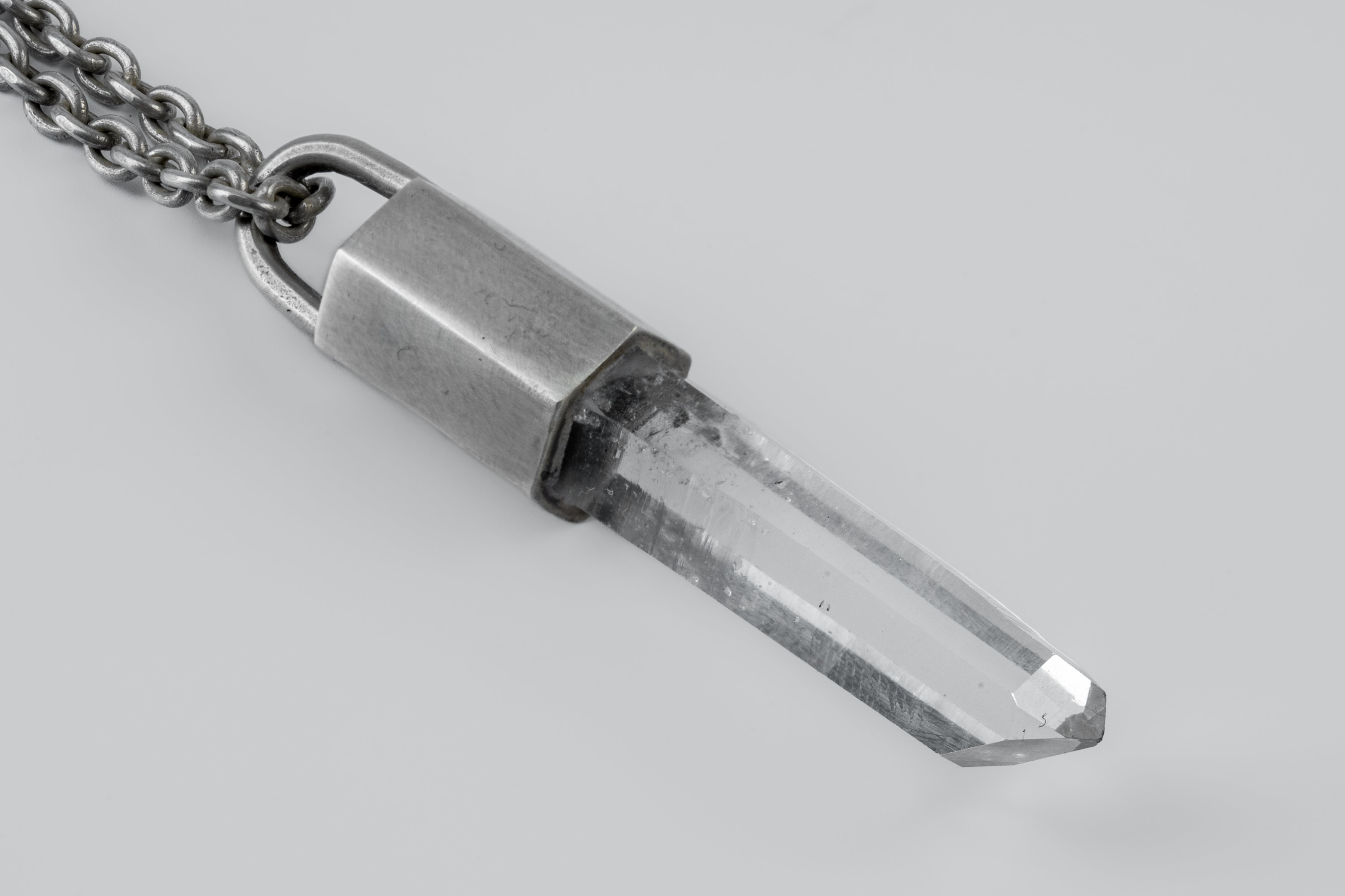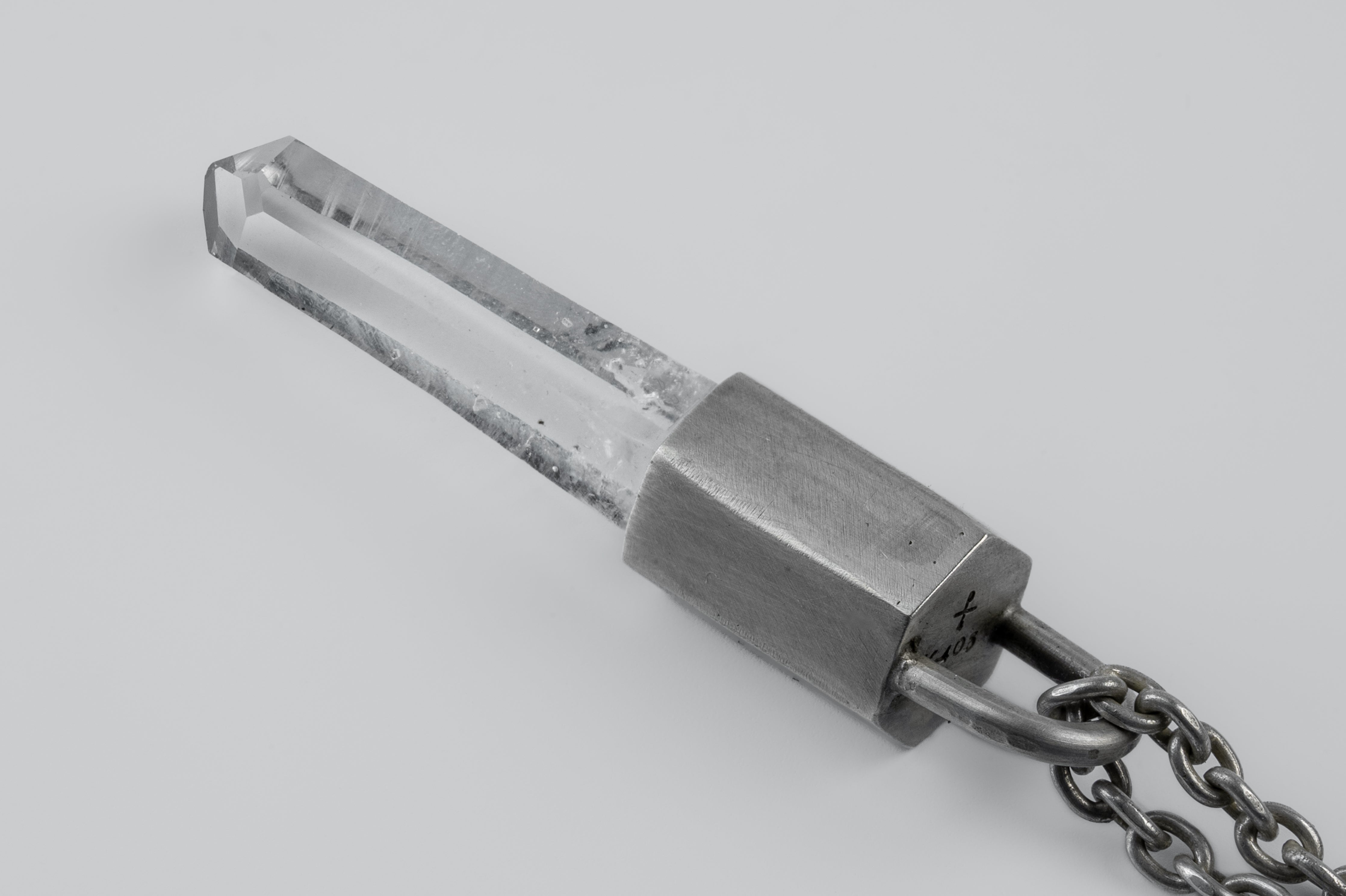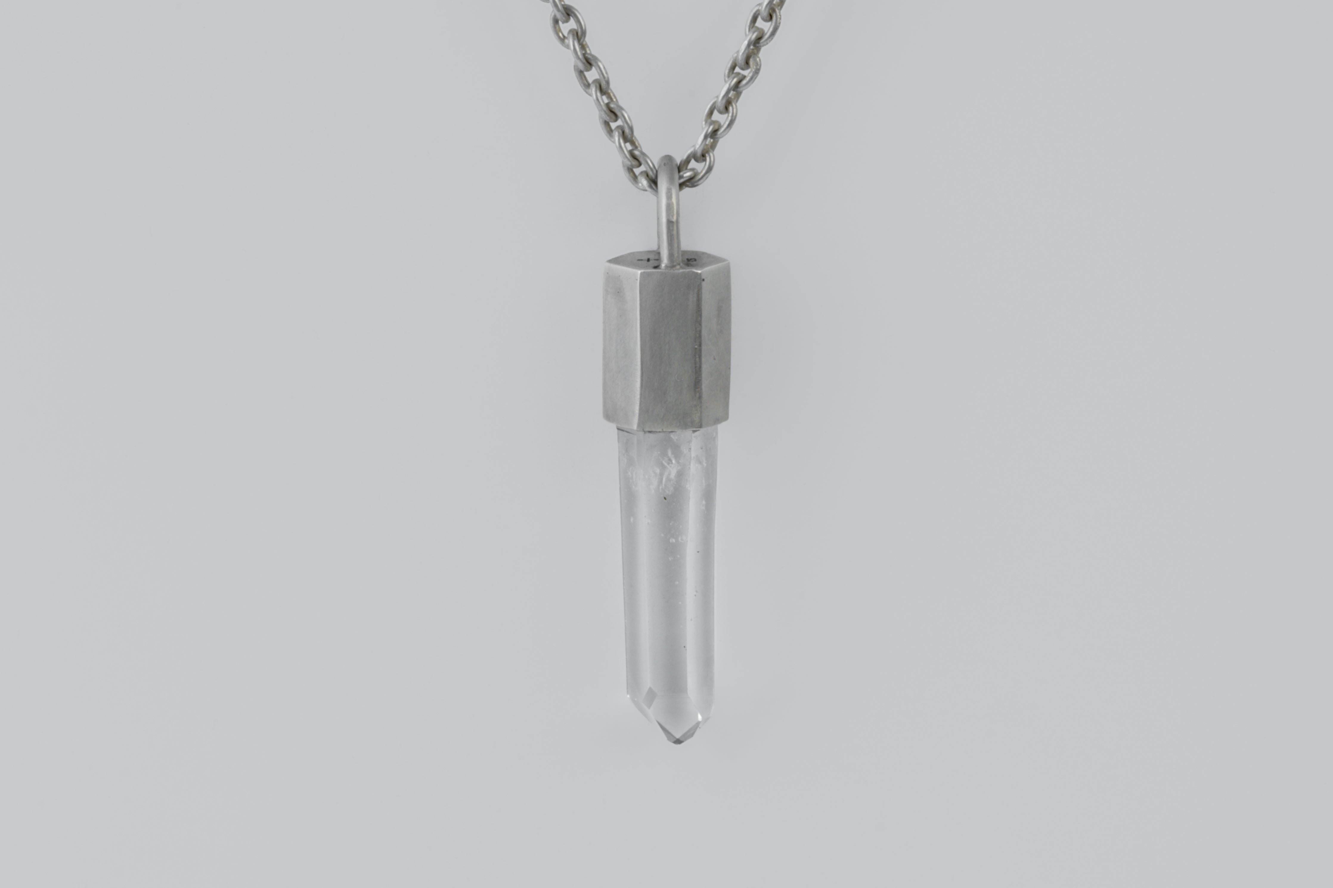 Colors: DA: Dirty Sterling. Sterling silver, dipped in acid to create a subdued surface. Results will never be identical, and this nuance / variation should be seen as a characteristic of the uniqueness of the product. LEM: Lemurian Quartz. Locality: Peñas Blancas Mine, Boyaca, Colombia