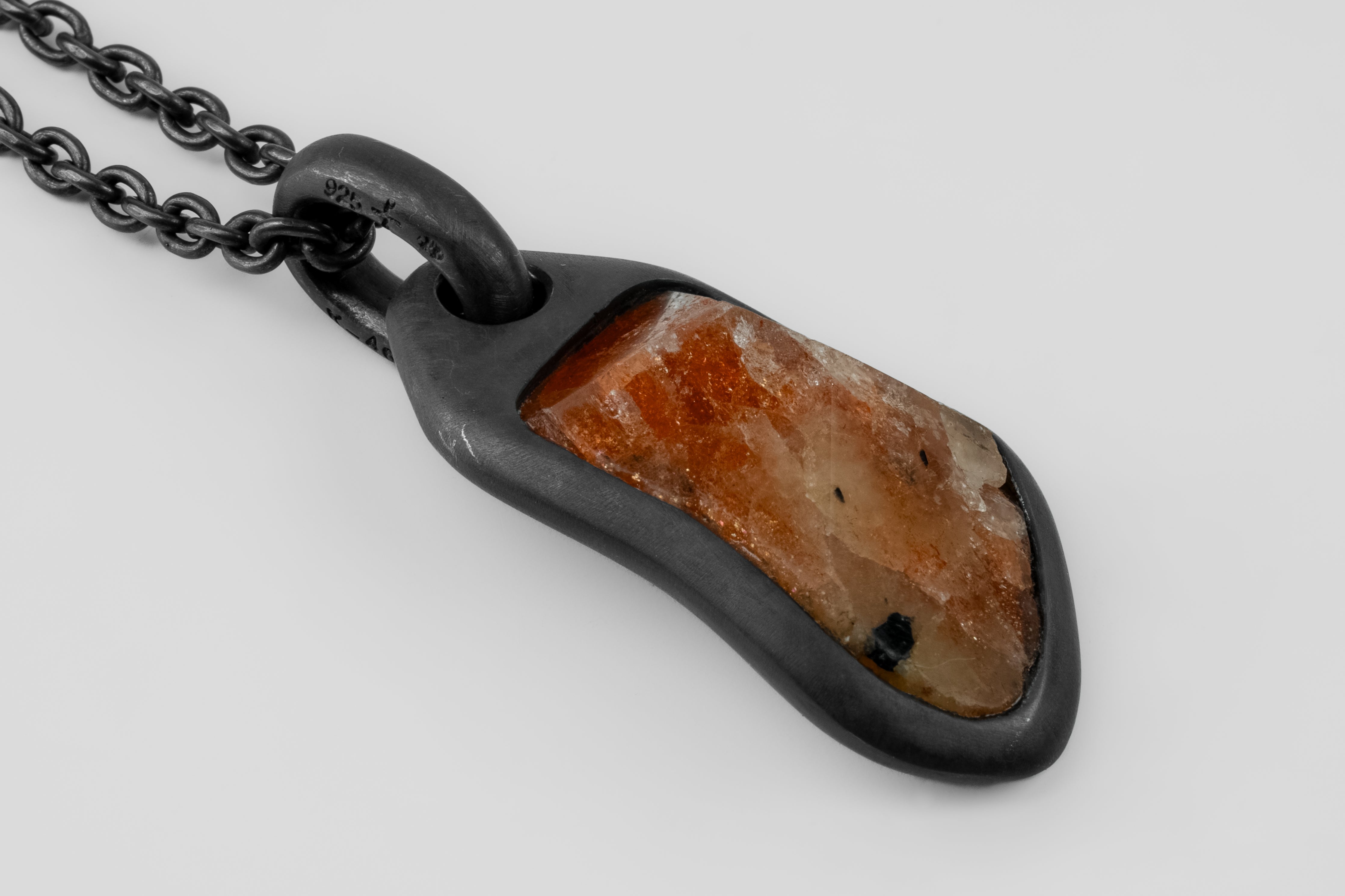 | Colors: | KA: Black Sterling. Black Sterling is a surface oxidation of sterling silver. This finish may fade over time, which can be considered an enhancement. Please note that Black Sterling tends to appear darker in photograph than in person. The finish can be re-blackened easily with Liver of Sulfur, available at most jewelry suppliers. SUN: Sunstone. Sunstone |
