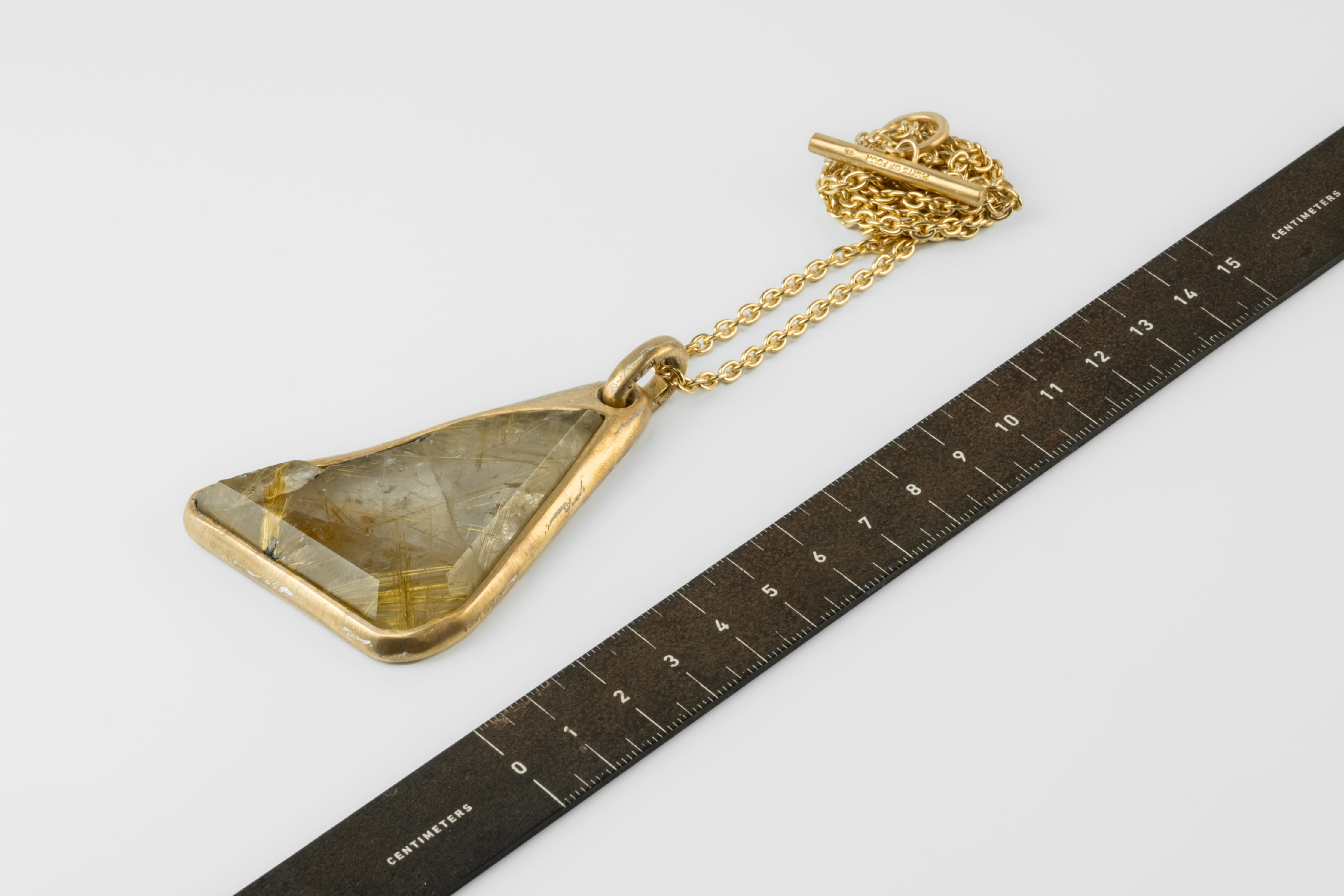 | Colors: | AGA: Sterling Acid Gold. Sterling silver substrate is electroplated with 18k Gold and then dipped into acid to create the subtly destroyed surface. The concentration of the plating solution, air temperature and time in the acid bath all play integral roles in the final result and exist in a delicate balance. No two items are the same and these nuances / variations should be seen as a characteristic of the product. RQ: Rutilated Quartz. |