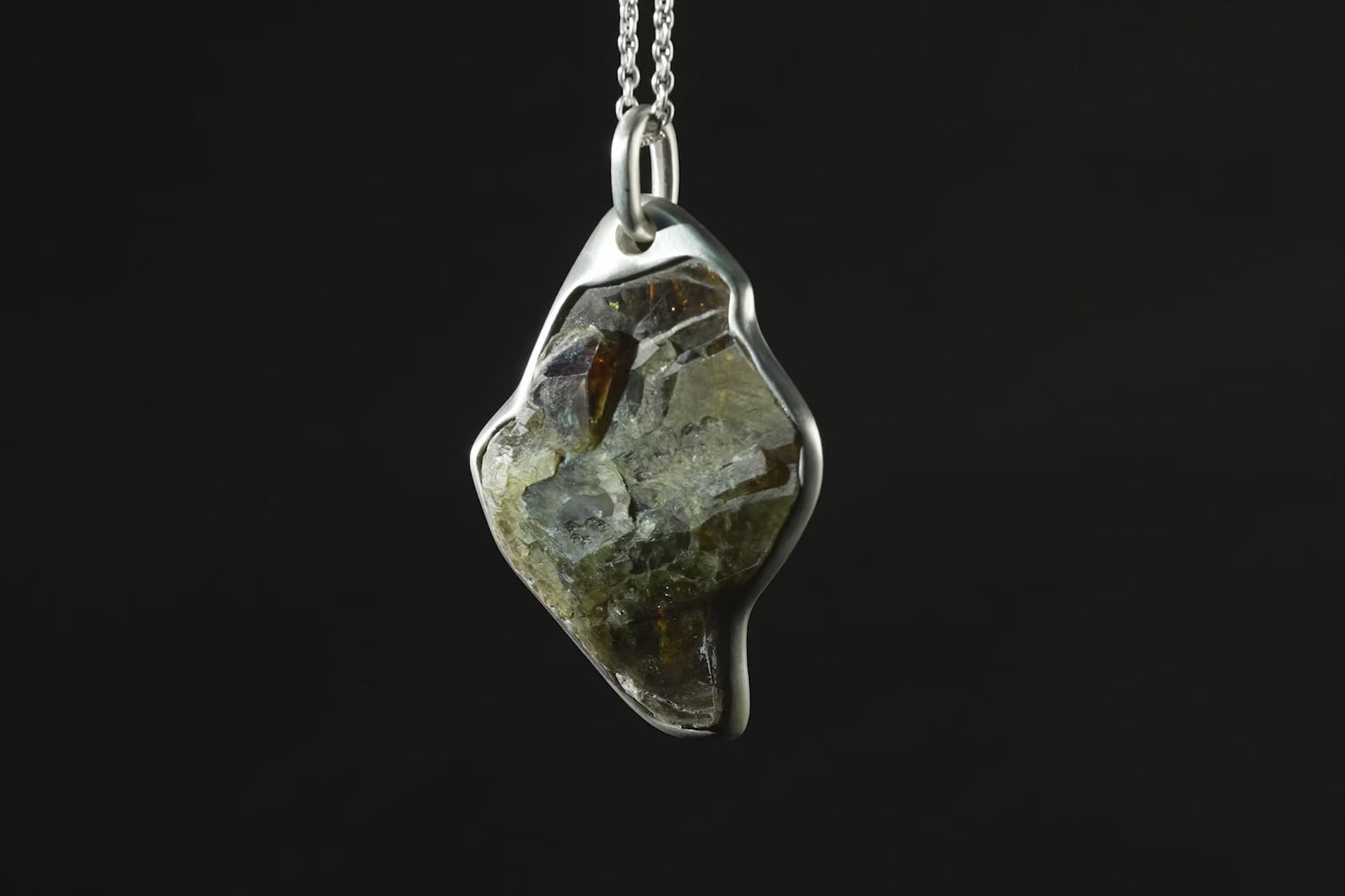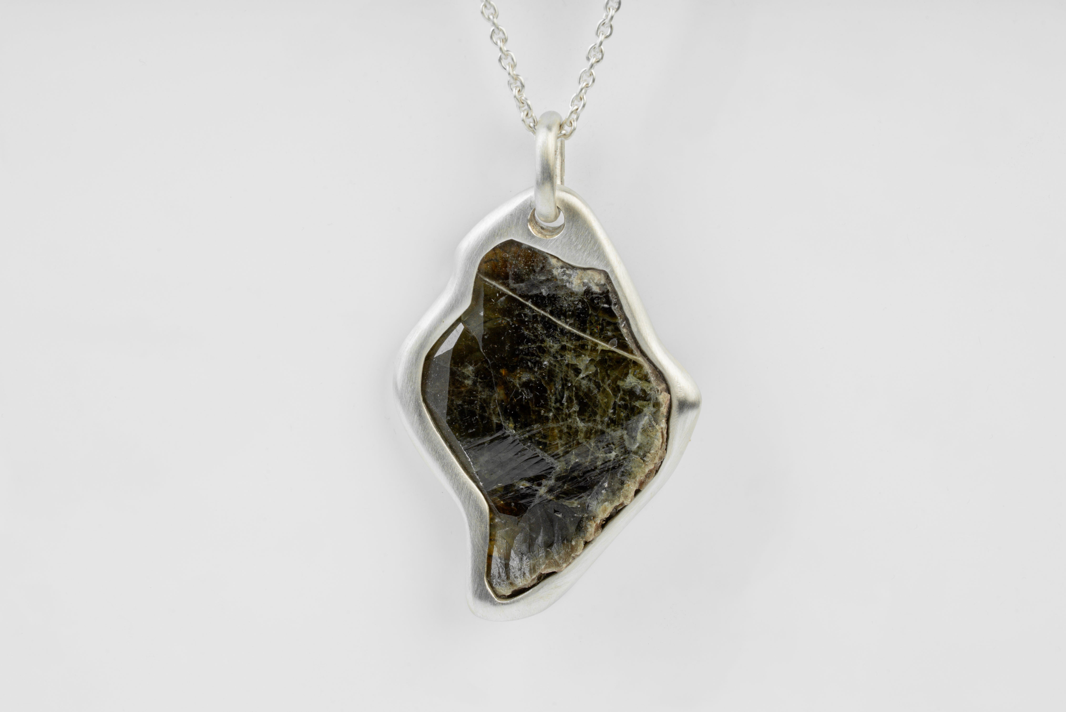 The Halos series explores crystals in their raw form. Uncommon and sometimes massive shapes that are encapsulated within a halo of metal. Tools for Magic. The crystals used in these pieces are discovered through adventure and are hand-selected. Each piece is unique and special.