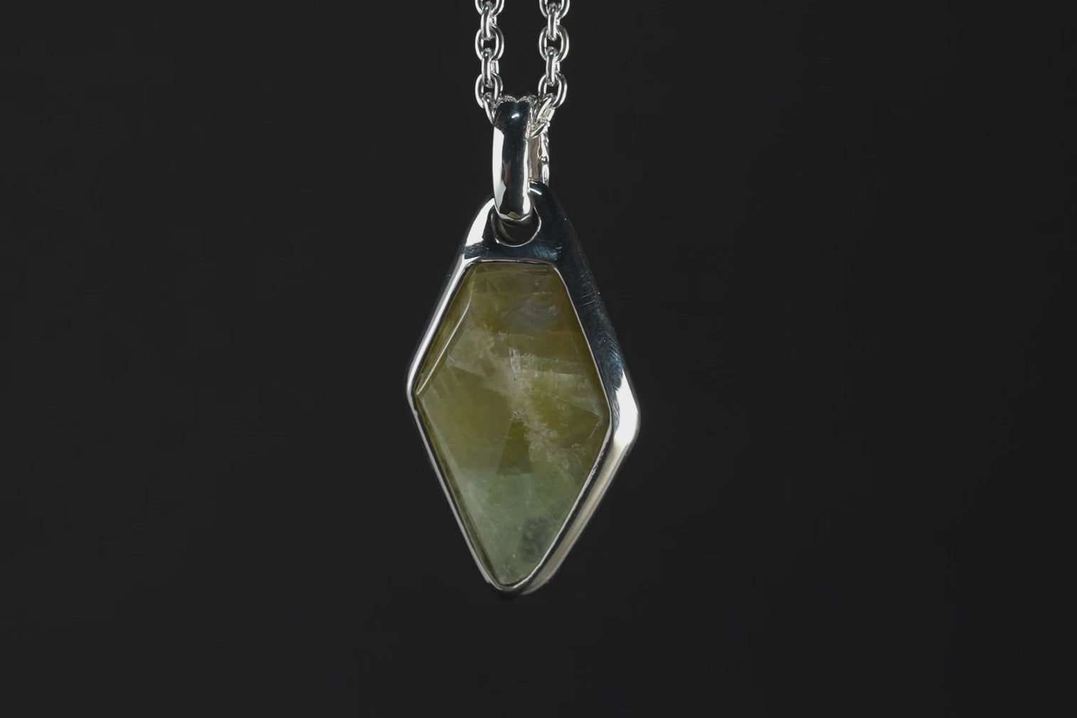 The crystal used in this item was hand-faceted. Each facet follows the natural shape of the raw material, making every piece unique.