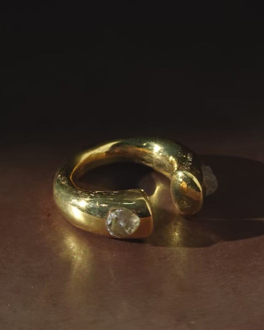 We use facet-grade rough gemstones which means that the traditional intention of this rough material is cut faceted stones. This assures the highest quality material while maintaining our aversion to classical jewelry norms.