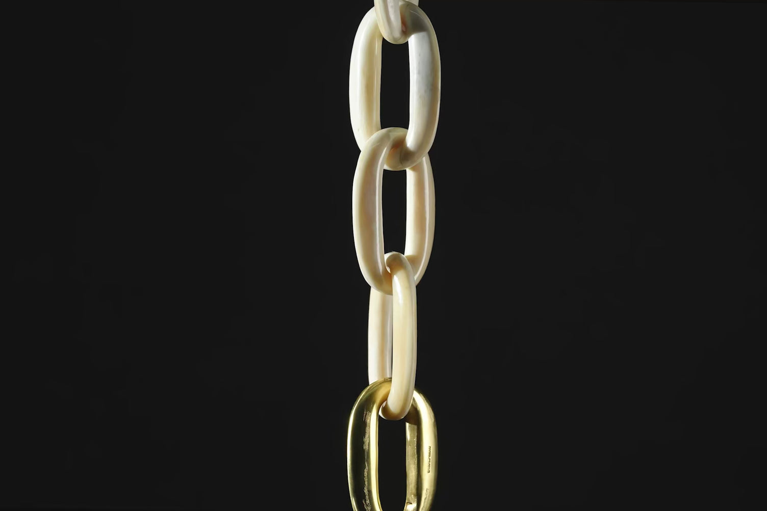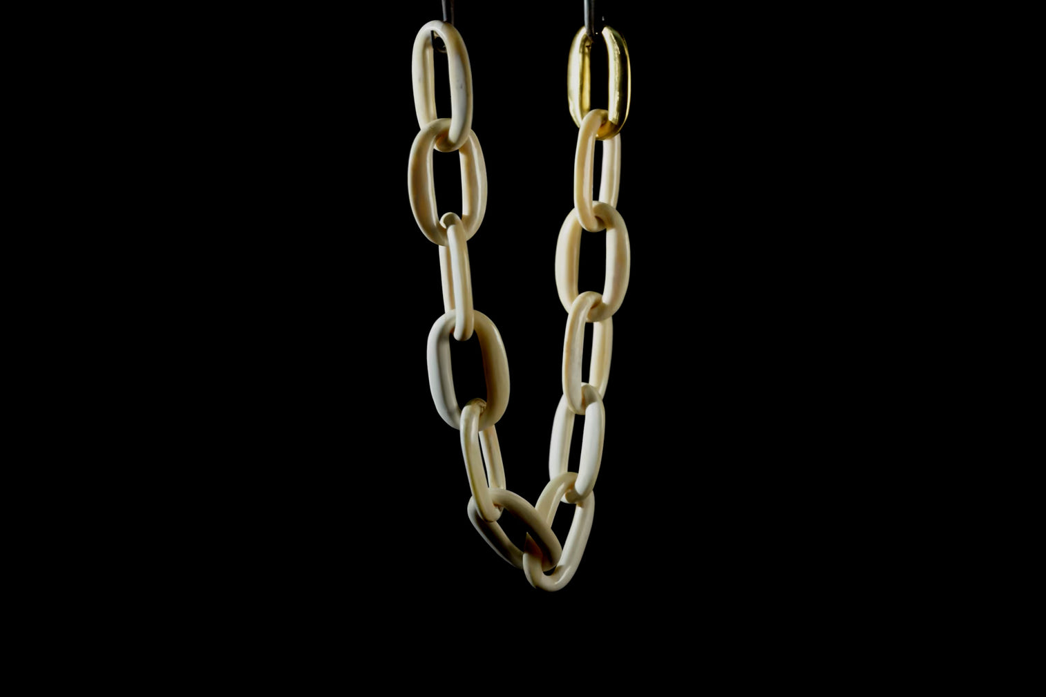 All organic chain is carved by hand. In the case of the chains made of wood, they are absolutely seamless; carved from a single long slab of wood (see link). Chains made from bone, horn and coral are modeled and constructed into chain links.