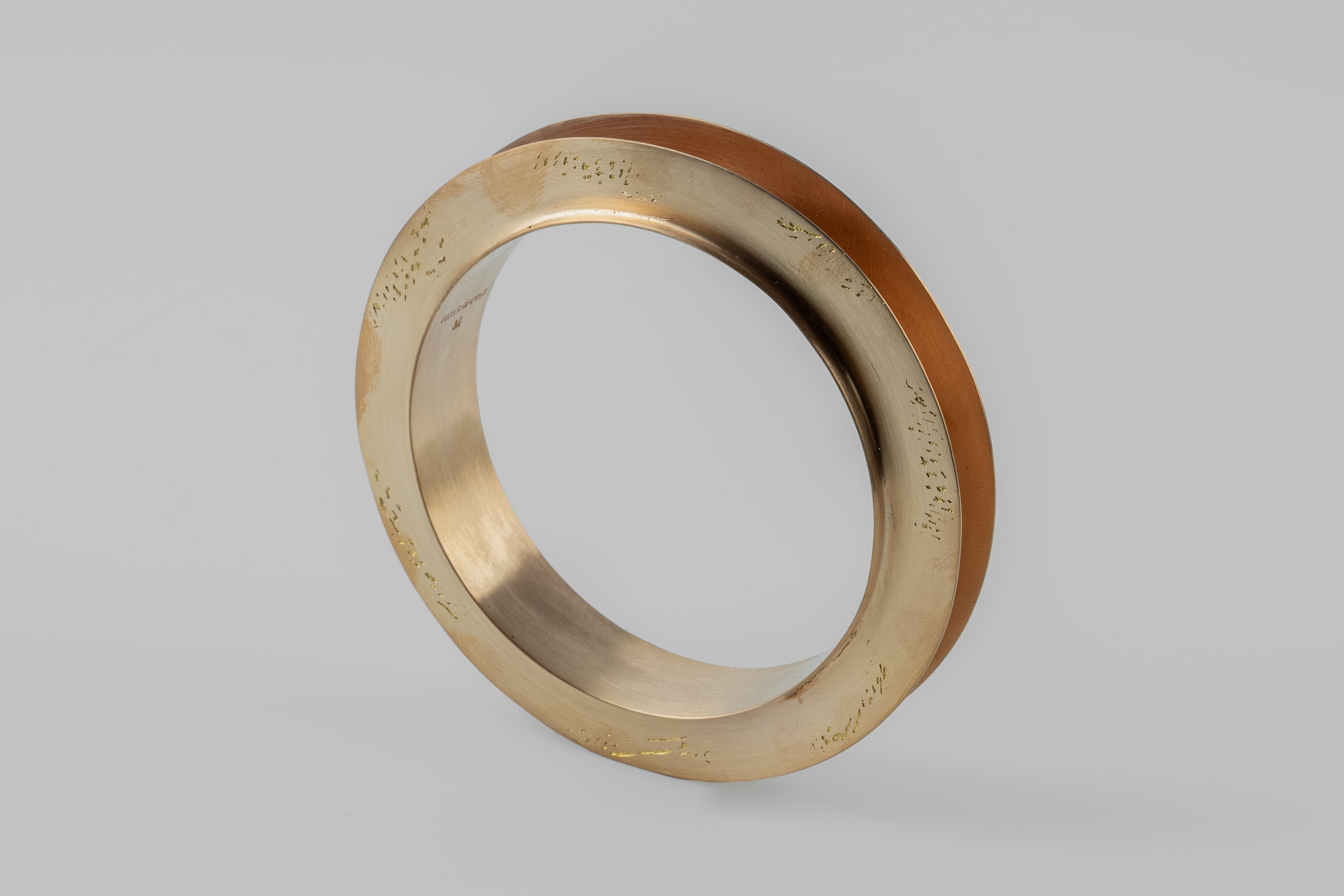 | Colors: | AM: Acid Rose. Brass substrate is electroplated with 18k Rose Gold and then dipped into acid to create the subtly destroyed surface. The concentration of the plating solution, air temperature and time in the acid bath all play integral roles in the final result and exist in a delicate balance. No two items are the same and these nuances / variations should be seen as a characteristic of the product. |