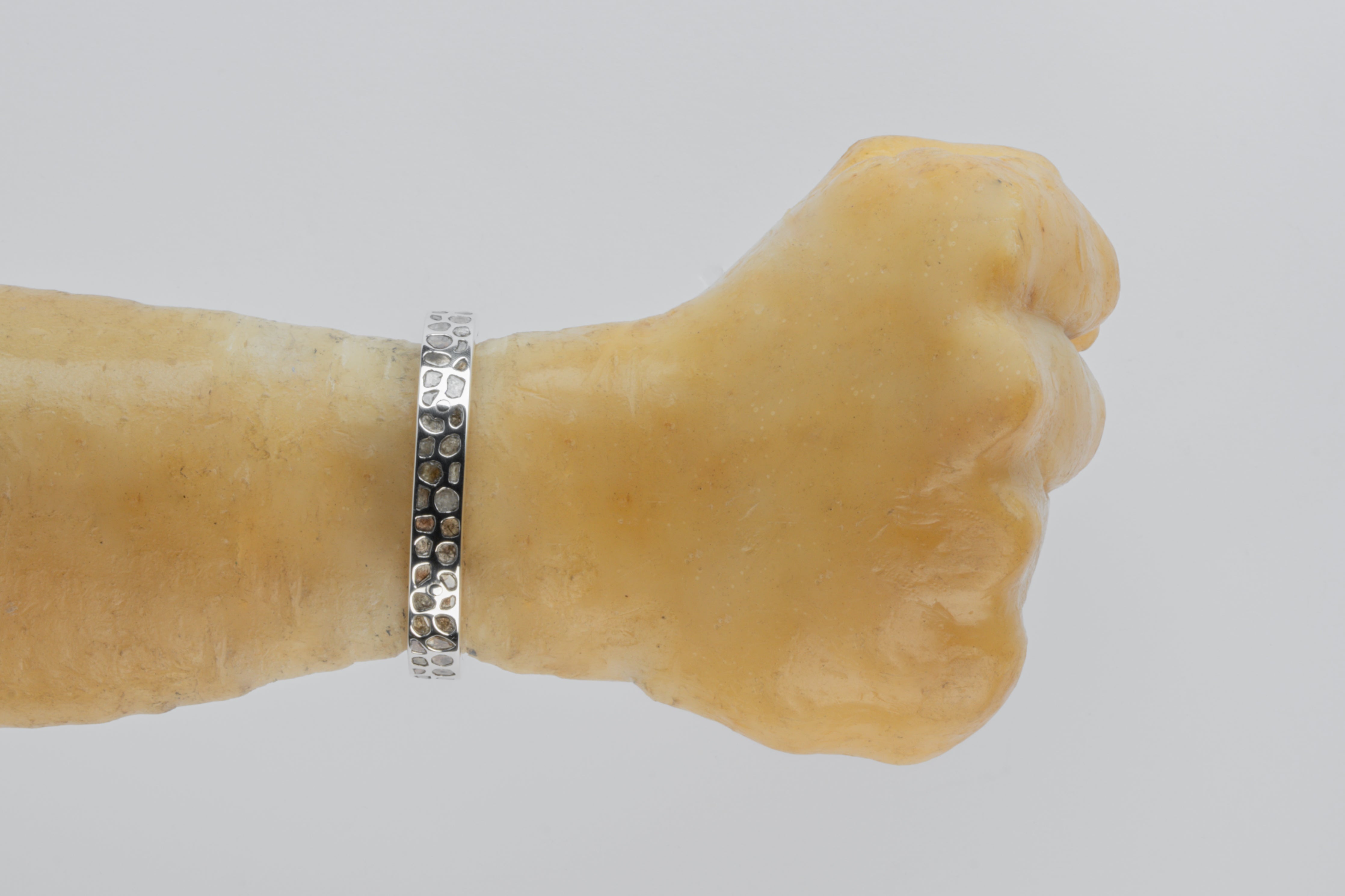 Mega Pavé is extreme stone setting. Breaking traditional norms, diamond slivers are individually carved into the wax master of every item before casting.