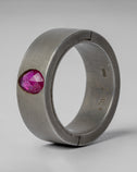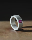 | Colors: | DA: Dirty Sterling. Sterling silver, dipped in acid to create a subdued surface. Results will never be identical, and this nuance / variation should be seen as a characteristic of the uniqueness of the product. RUB: Rough Ruby (Faceted). |