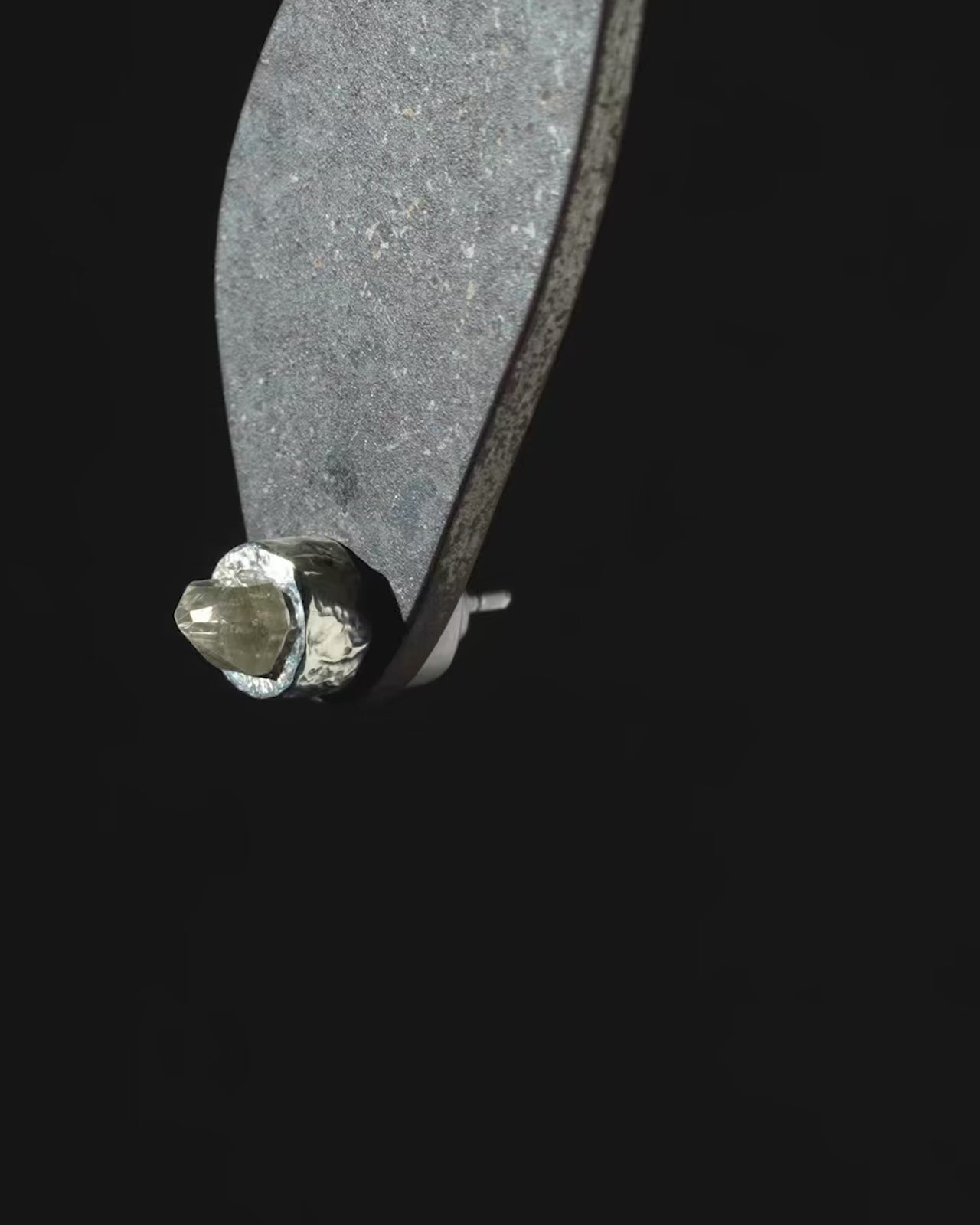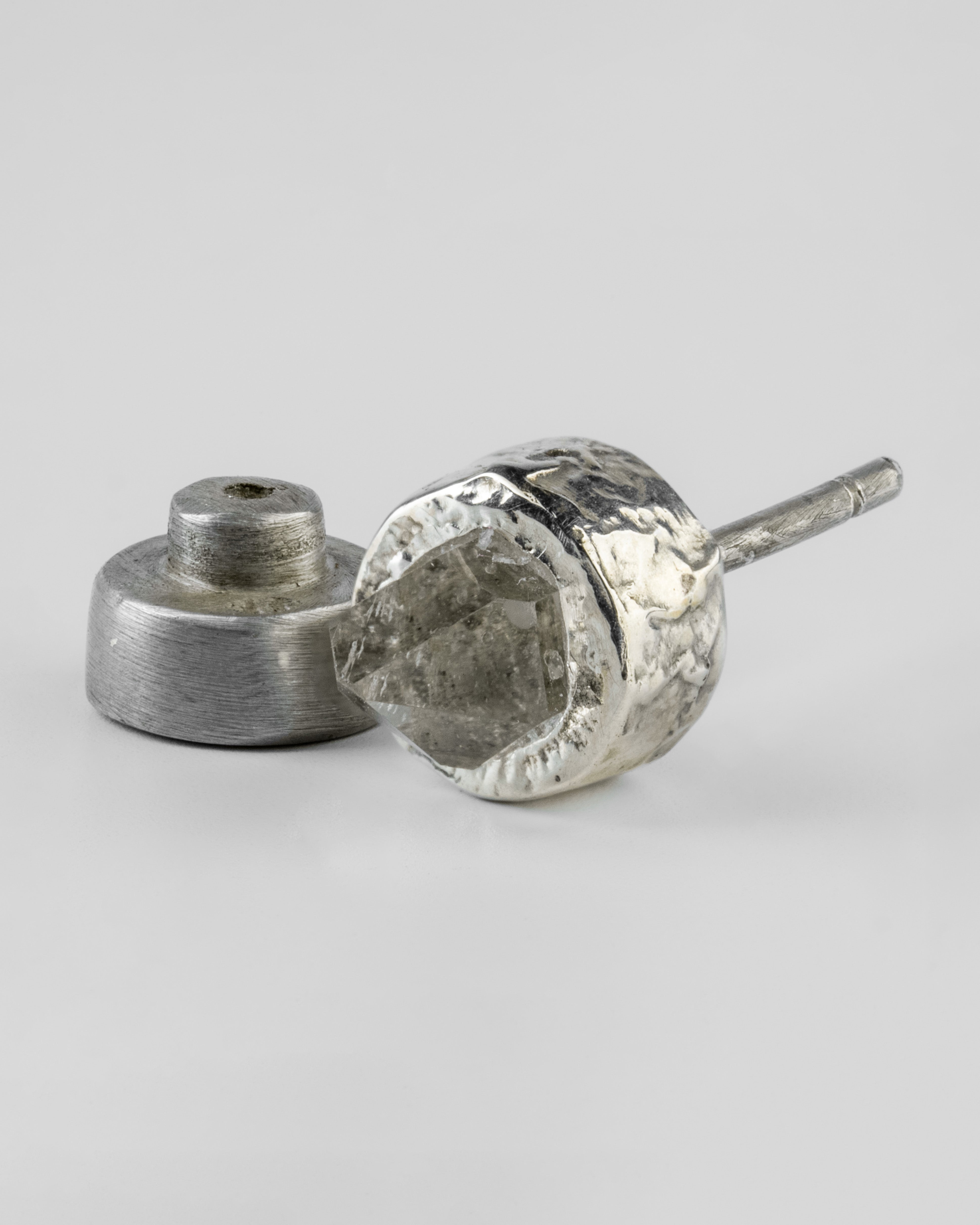 | Colors: | DA10KW: Dirty 10K White Gold Skin. Dirty sterling silver (acid treated) with fused layer of 10K white gold HER: Herkimer diamond. Double-terminated quartz crystals, super clarity (water-clear) discovered within exposed outcrops of dolostone in and around Herkimer County, New York and the Mohawk River Valley [Anu-ra-el] |