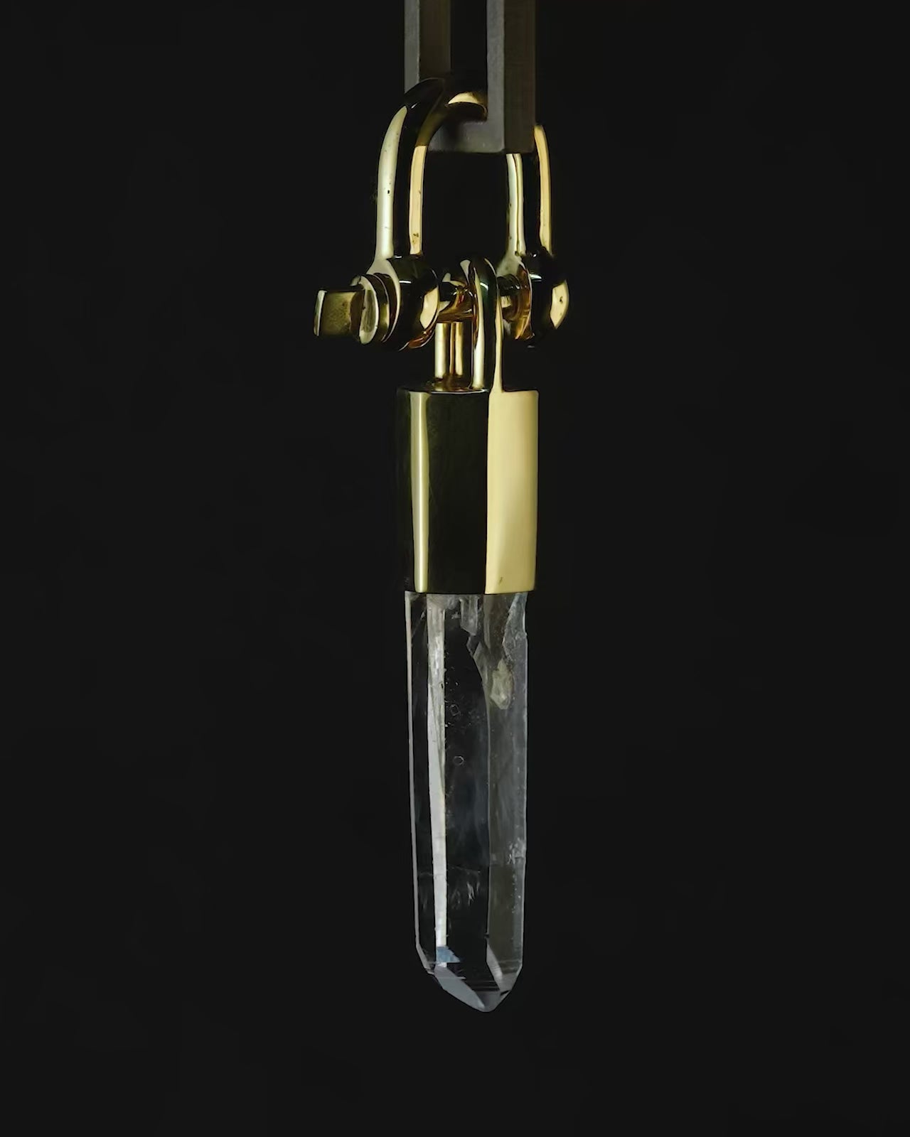 | Colors: | YG: Bright Gold. Brass substrate, polished and electroplated with 18k gold. LEM: Lemurian Quartz. Locality: Peñas Blancas Mine, Boyaca, Colombia |