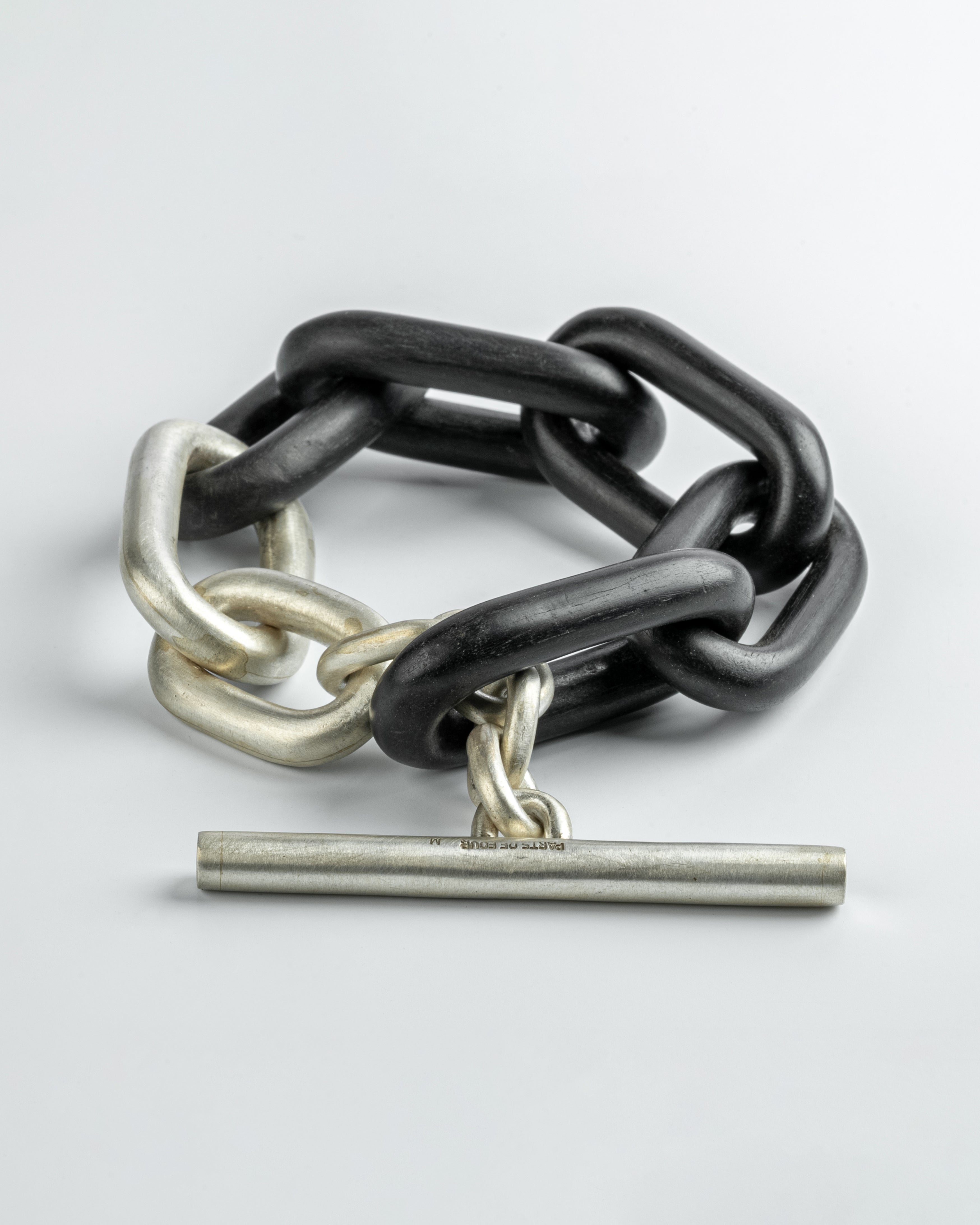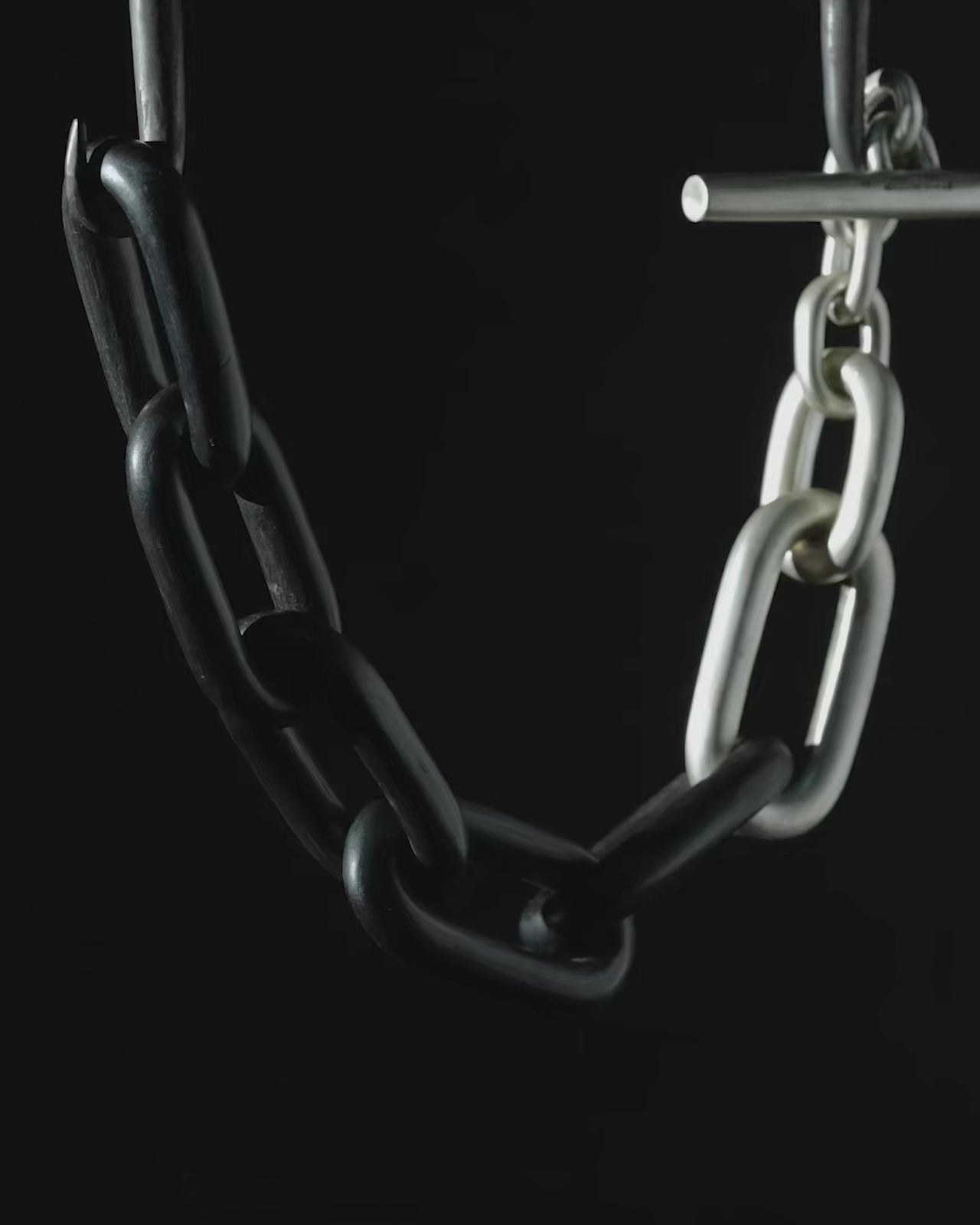 All organic chain is carved by hand. In the case of the chains made of wood, they are absolutely seamless; carved from a single long slab of wood (see link). Chains made from bone, horn and coral are modeled and constructed into chain links.