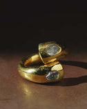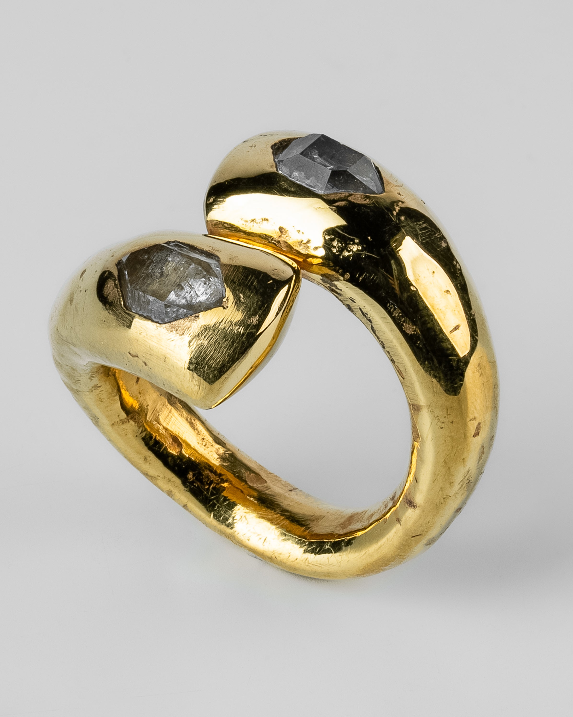 We use facet-grade rough gemstones which means that the traditional intention of this rough material is cut faceted stones. This assures the highest quality material while maintaining our aversion to classical jewelry norms.