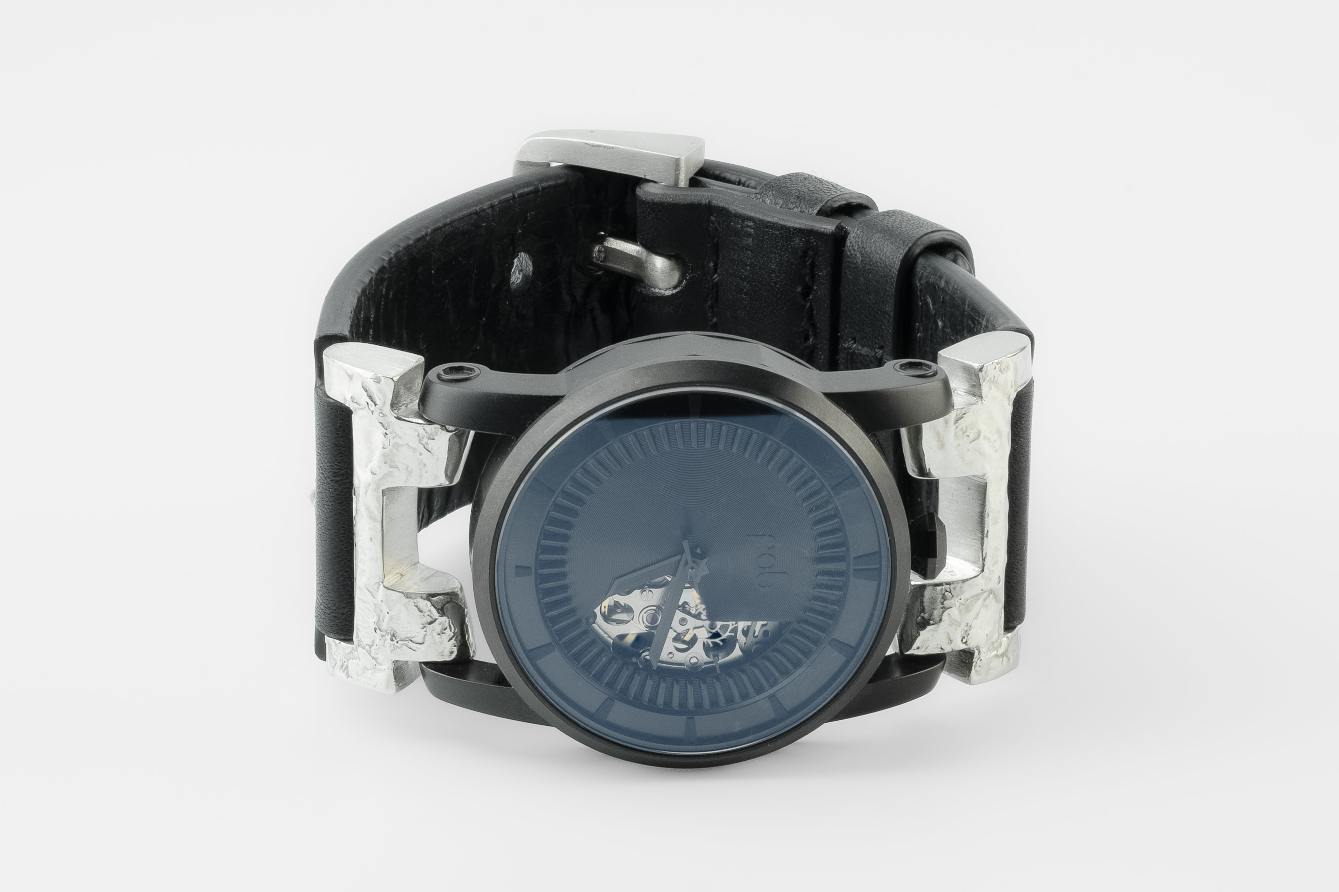 Avoid water and moisture whenever possible. While the watch body is water resistant to 5 atm, the watch band is constructed from leather and silver and will degrade from contact. Caution: Do not handle the crown upon contact with water.