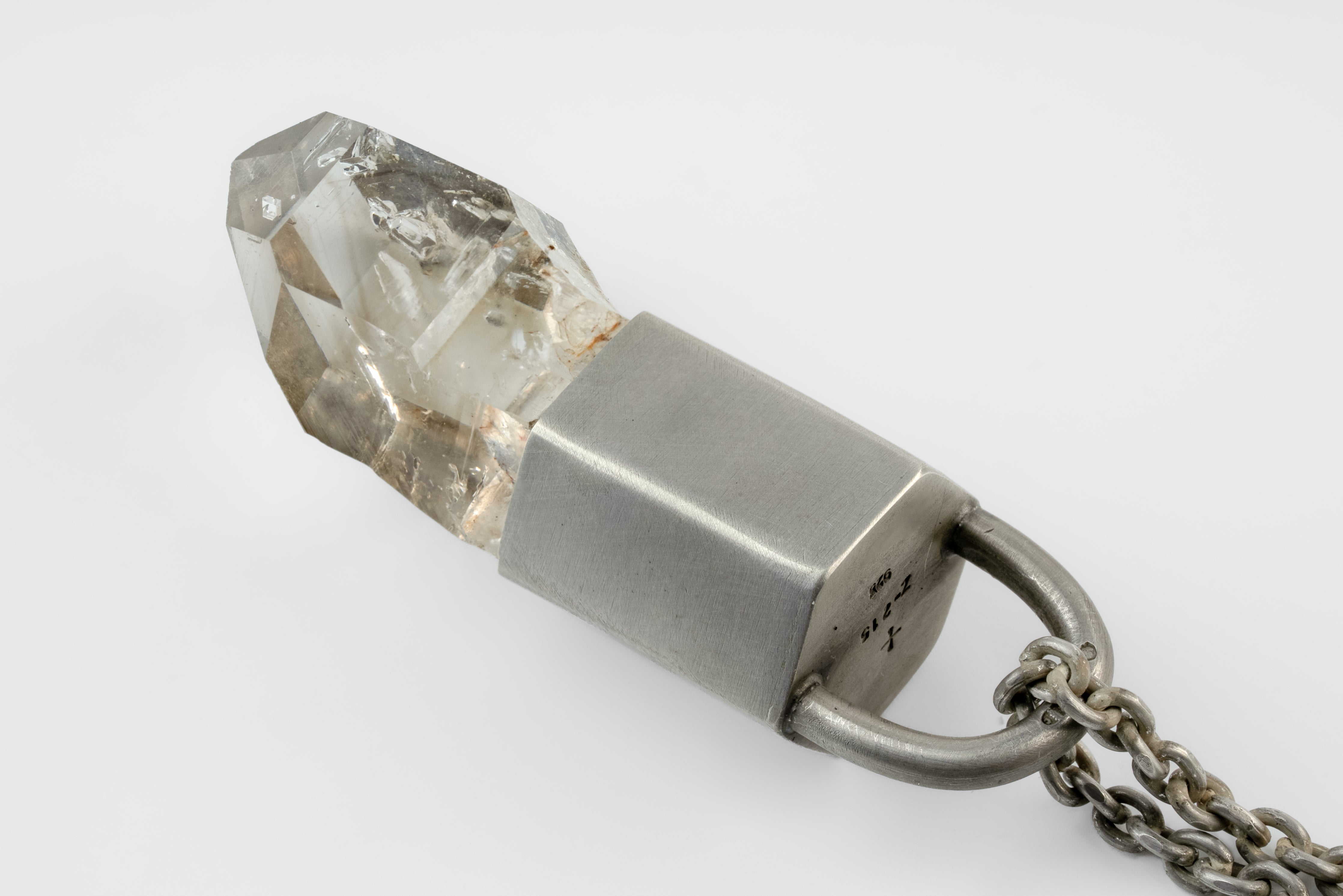 | Colors: | DA: Dirty Sterling. Sterling silver, dipped in acid to create a subdued surface. Results will never be identical, and this nuance / variation should be seen as a characteristic of the uniqueness of the product. ENQ: Enhydro Quartz. |