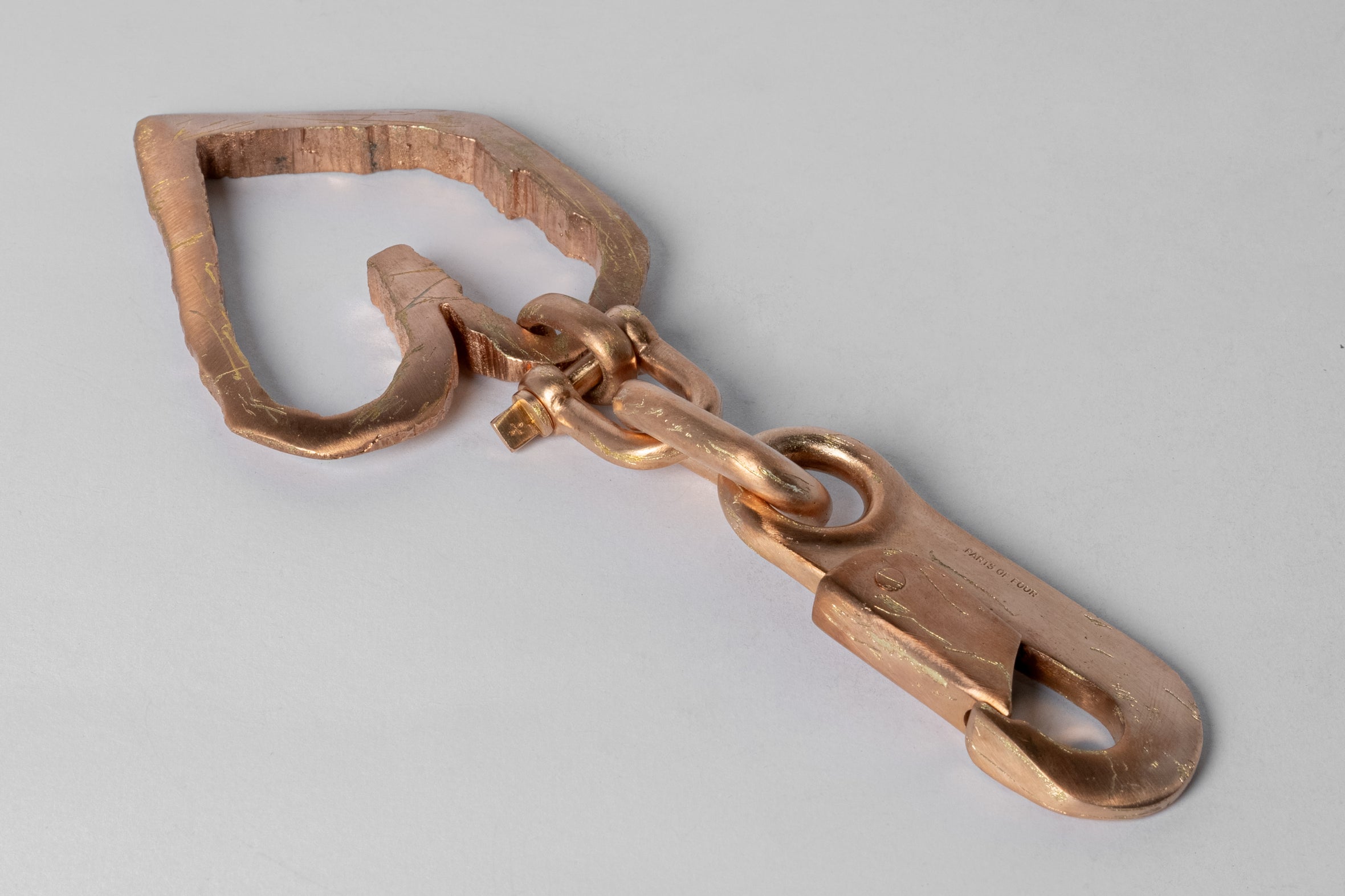 | Colors: | AM: Acid Rose. Brass substrate is electroplated with 18k Rose Gold and then dipped into acid to create the subtly destroyed surface. The concentration of the plating solution, air temperature and time in the acid bath all play integral roles in the final result and exist in a delicate balance. No two items are the same and these nuances / variations should be seen as a characteristic of the product. |