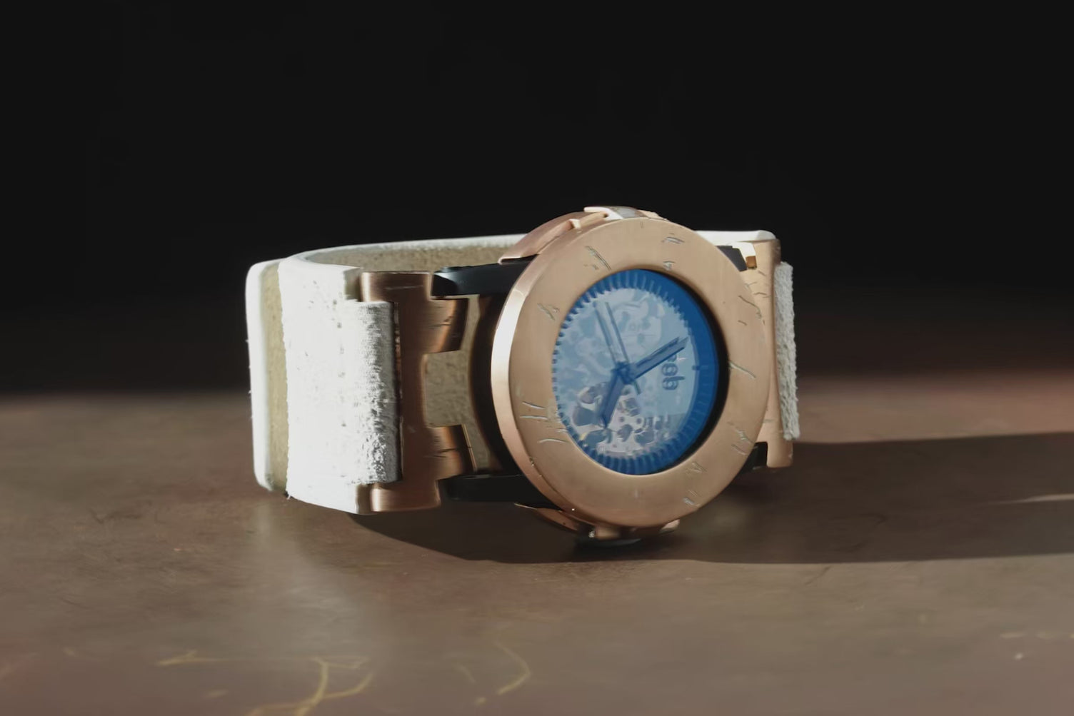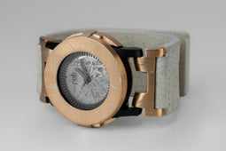 Avoid water and moisture whenever possible. While the watch body is water resistant to 5 atm, the watch band is constructed from leather and silver and will degrade from contact. Caution: Do not handle the crown upon contact with water.