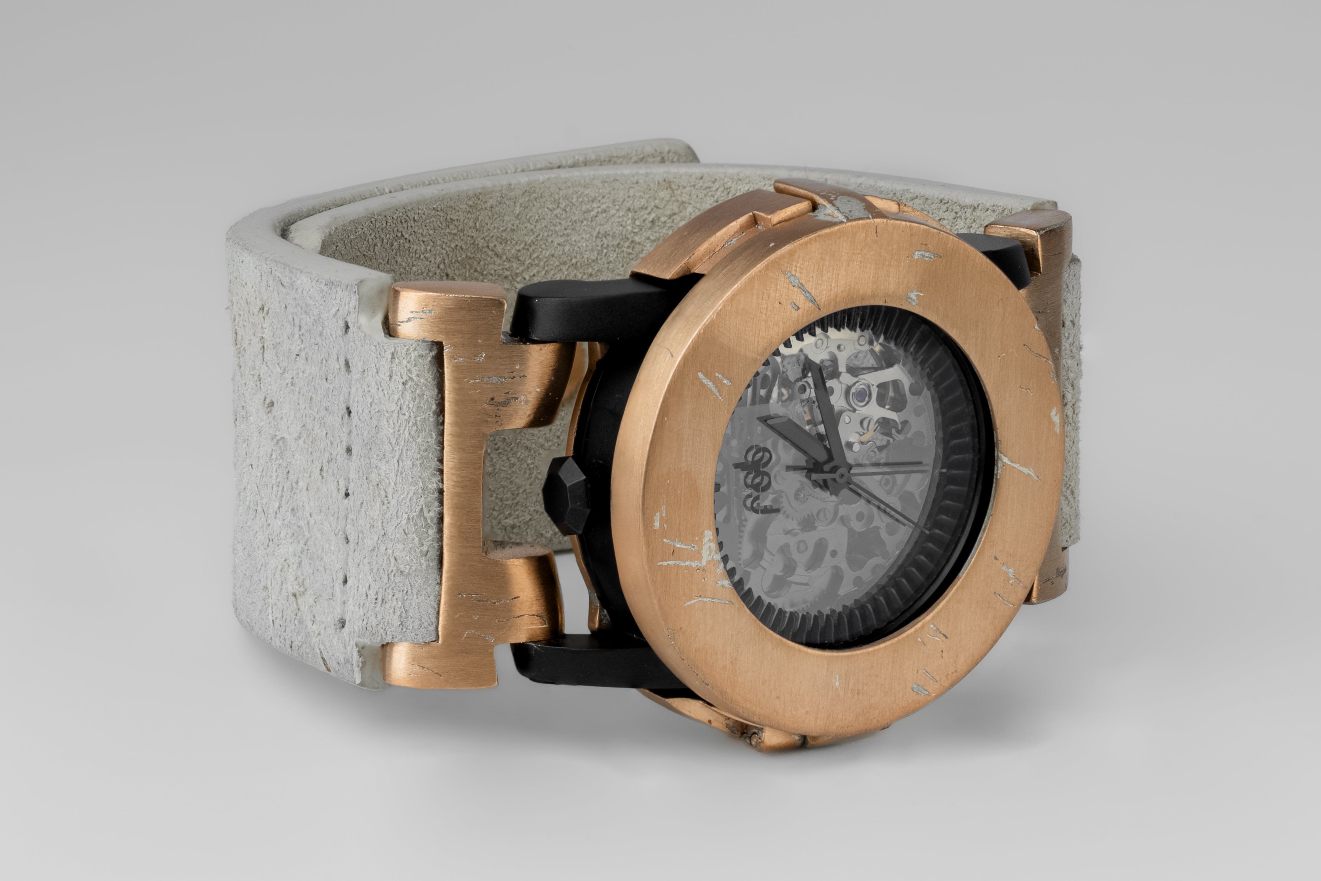 | Colors: | AMA: Sterling Acid Rose. Sterling silver substrate is electroplated with 18k Rose Gold and then dipped into acid to create the subtly destroyed surface. The concentration of the plating solution, air temperature and time in the acid bath all play integral roles in the final result and exist in a delicate balance. No two items are the same and these nuances / variations should be seen as a characteristic of the product. FLE: Natural Buffalo leather. |