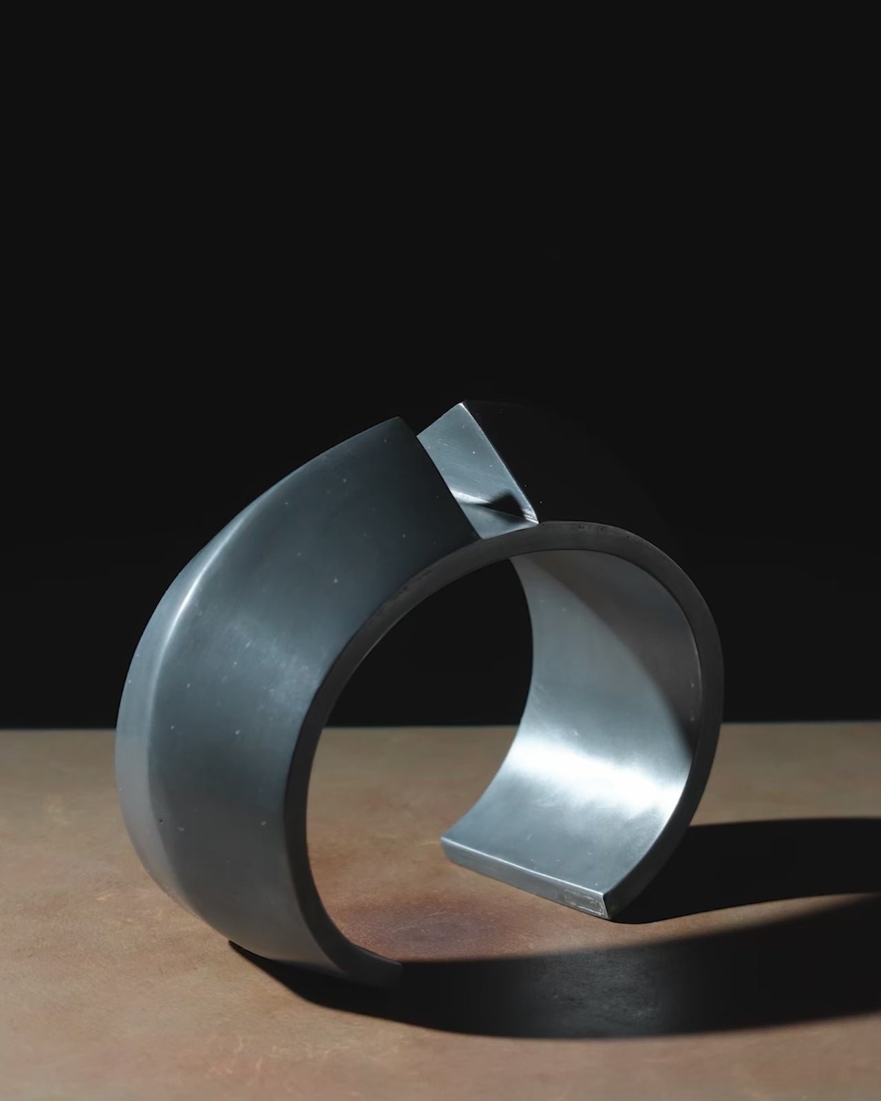 This piece is 100% hand fabricated from metal plate; cut into sections and soldered together to make the hollow three dimensional form. If sterling silver, the sheet metal is made by hand. The silver is melted and rolled out into plate.