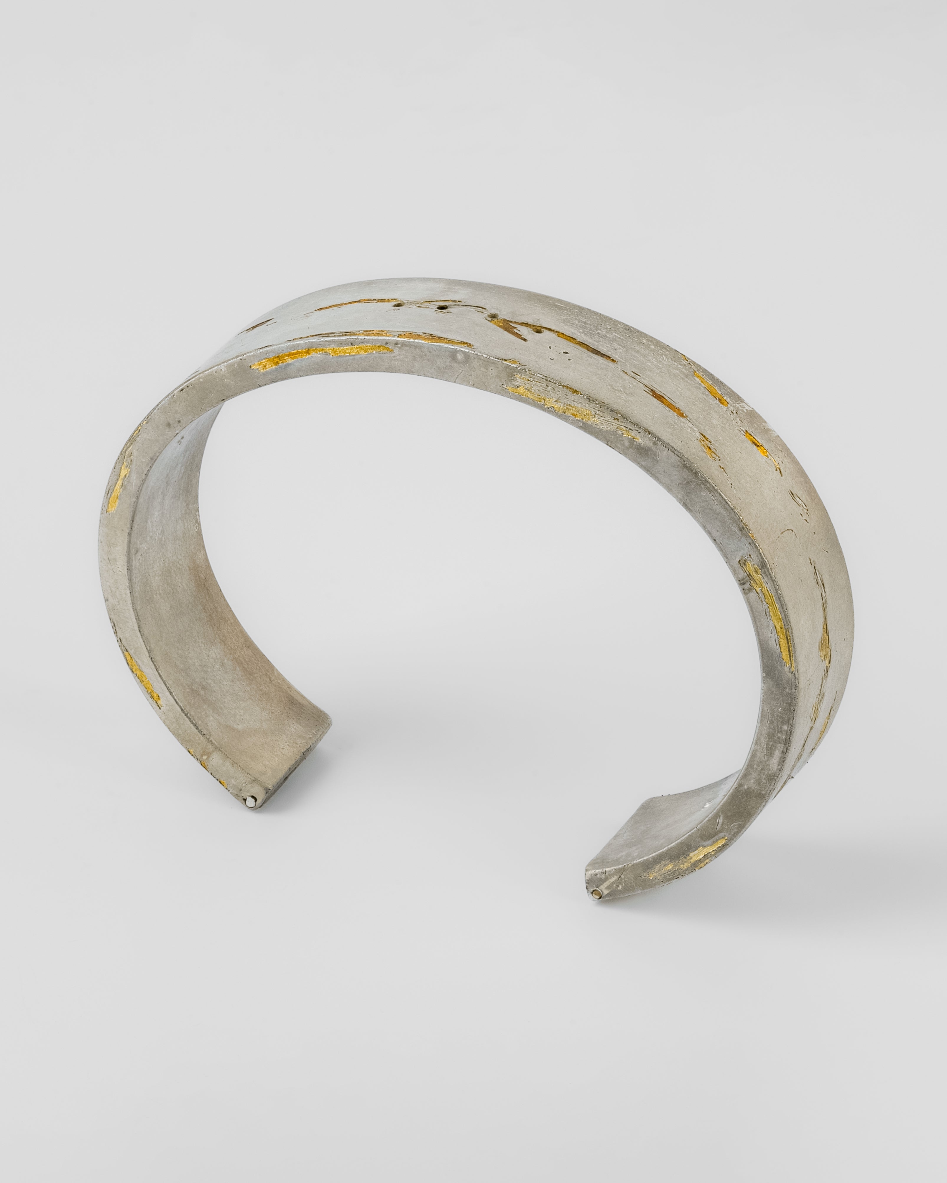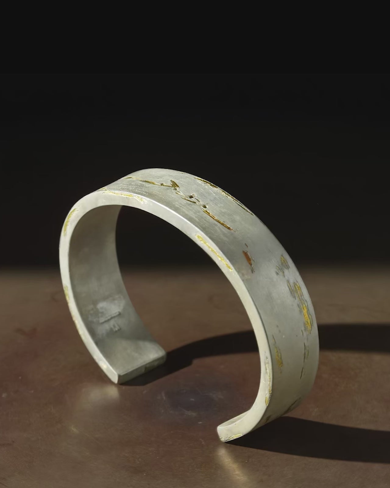 | Colors: | SUAG: Super Ultra Acid Gold. Brass substrate is electroplated with 18k gold and then submerged into a heavy acid bath. Once the initial deterioration occurs the surface is then burned to finalize the texturing. The resulting landscape is a natural occurrence. The concentration of the plating solution, air temperature and time in the acid bath all play integral roles in the final result. No two items are the same and these nuances / variations should be seen as a characteristic of the product. |