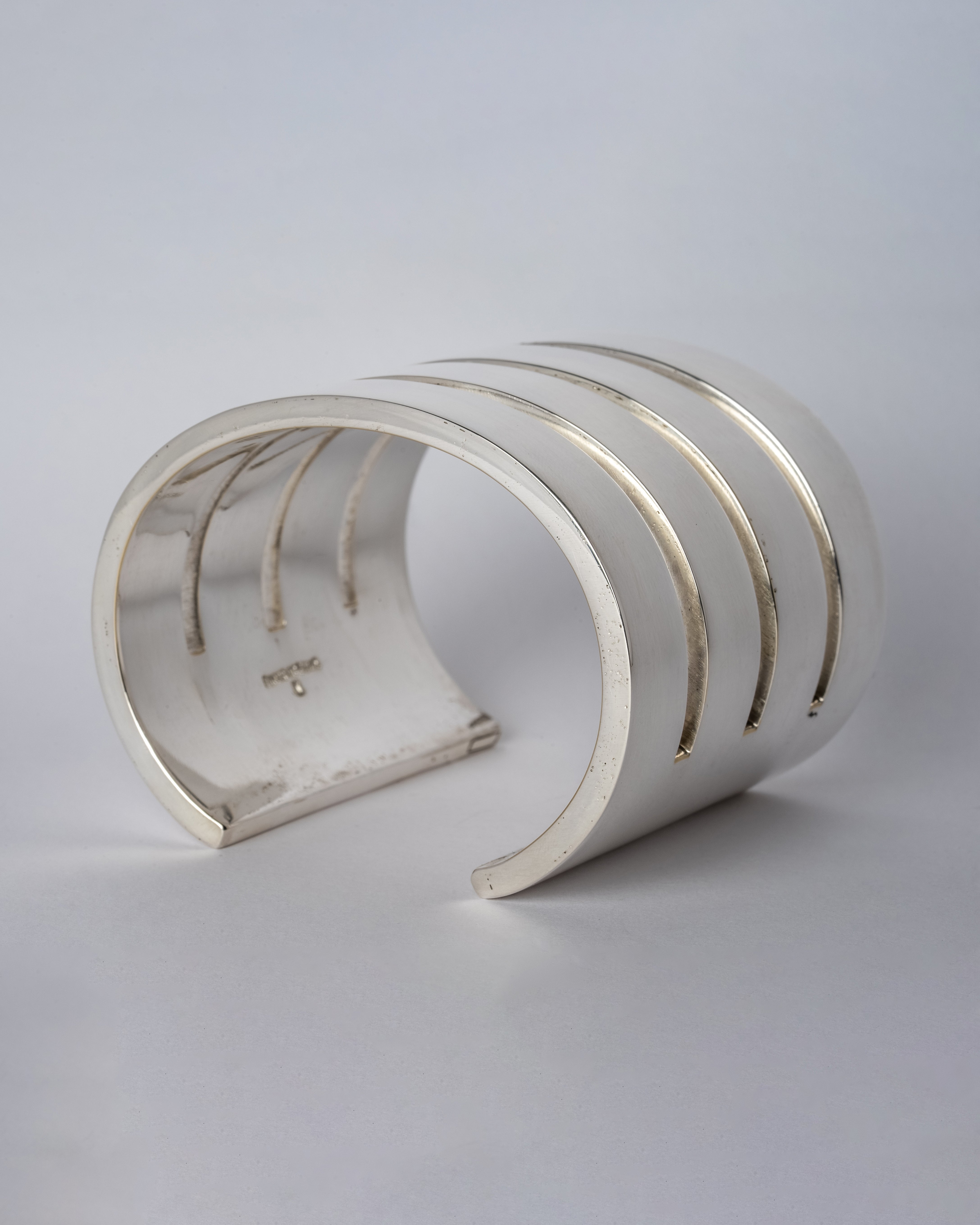 This piece is 100% hand fabricated from metal plate; cut into sections and soldered together to make the hollow three dimensional form. If sterling silver, the sheet metal is made by hand. The silver is melted and rolled out into plate.
