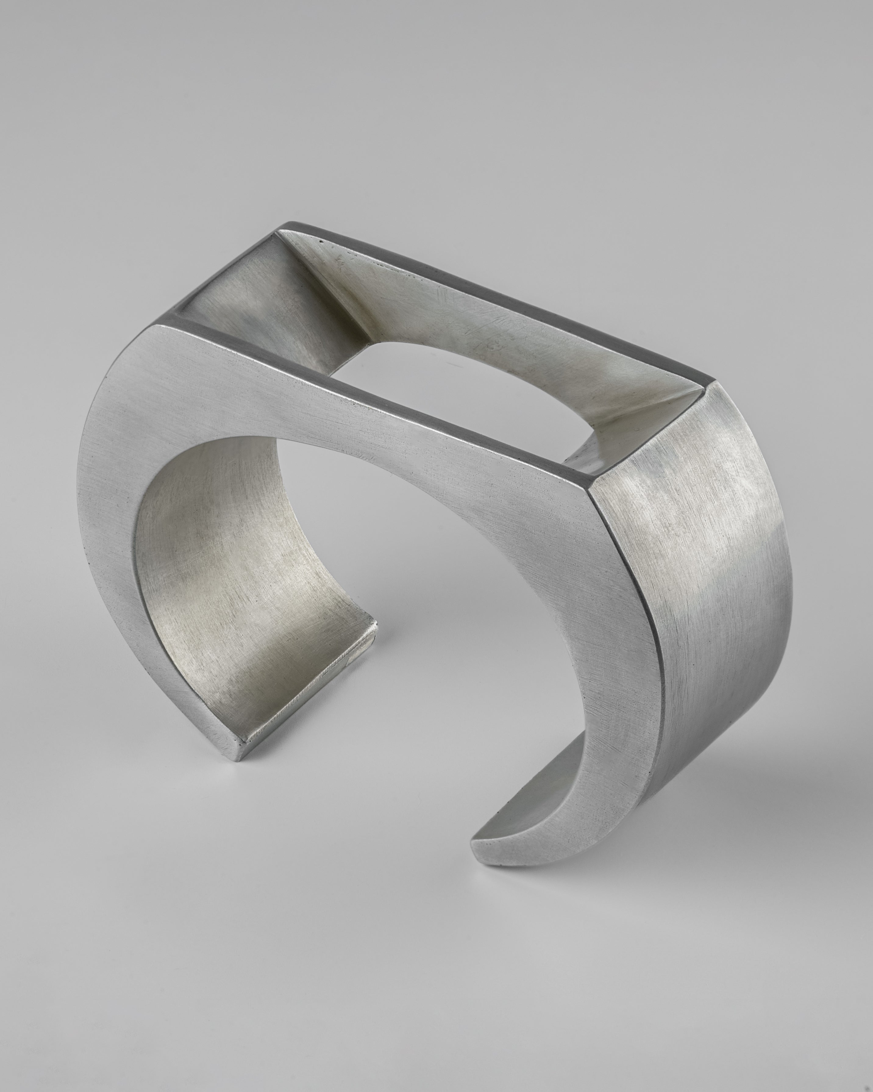 This piece is 100% hand fabricated from metal plate; cut into sections and soldered together to make the hollow three dimensional form. If sterling silver, the sheet metal is made by hand. The silver is melted and rolled out into plate.