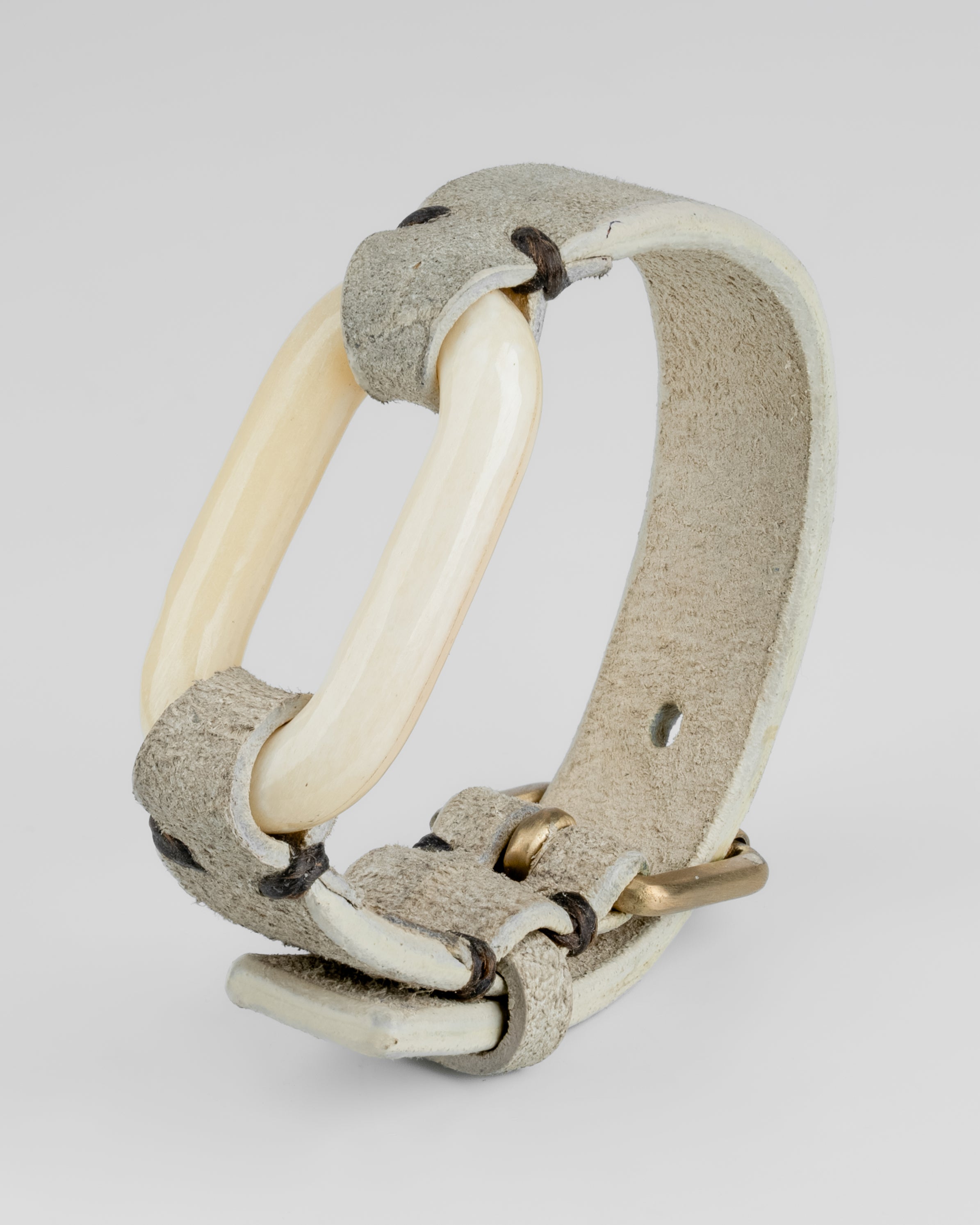| Colors: | MB: Matte Bone. Water buffalo (Bubalus bubalis). The bone form is completely hand carved. FLE: Natural Buffalo leather. |