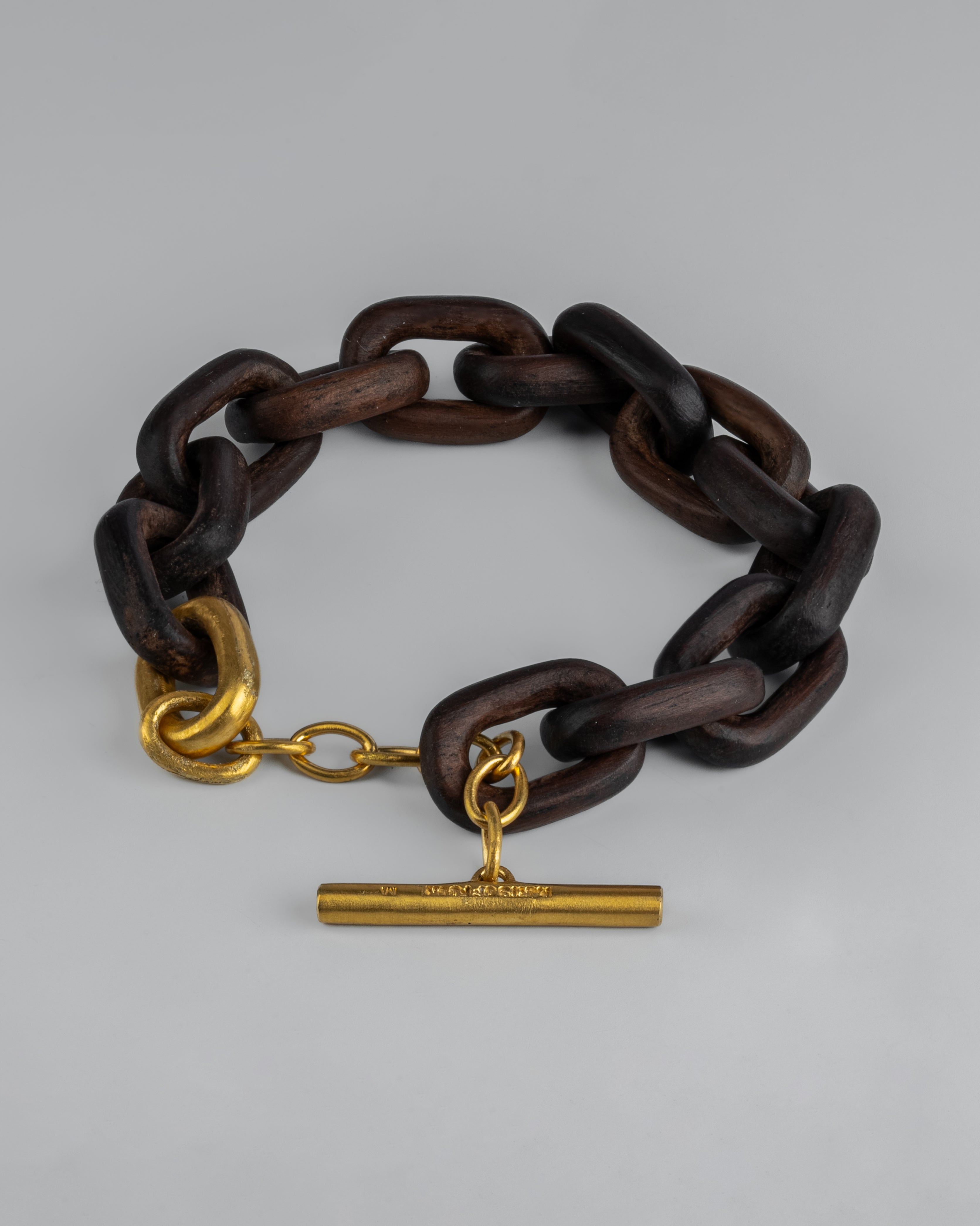 All organic chain is carved by hand. In the case of the chains made of wood, they are absolutely seamless; carved from a single long slab of wood (see link). Chains made from bone, horn and coral are modeled and constructed into chain links.