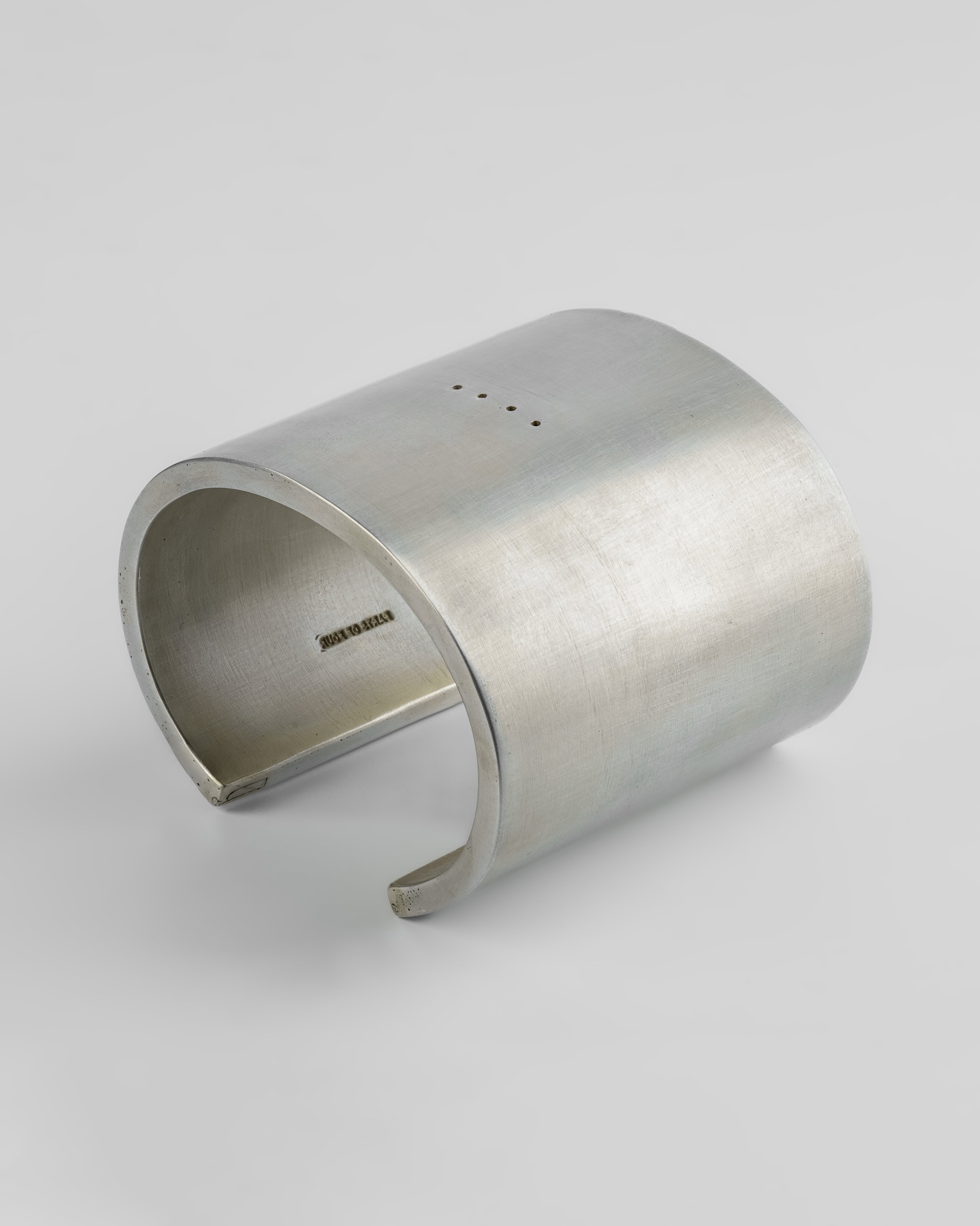 | Colors: | AS: Acid Silver. Brass substrate is electroplated with silver and then dipped into acid to create the subtly destroyed surface. The concentration of the plating solution, air temperature and time in the acid bath all play integral roles in the final result and exist in a delicate balance. No two items are the same and these nuances / variations should be seen as a characteristic of the product. |