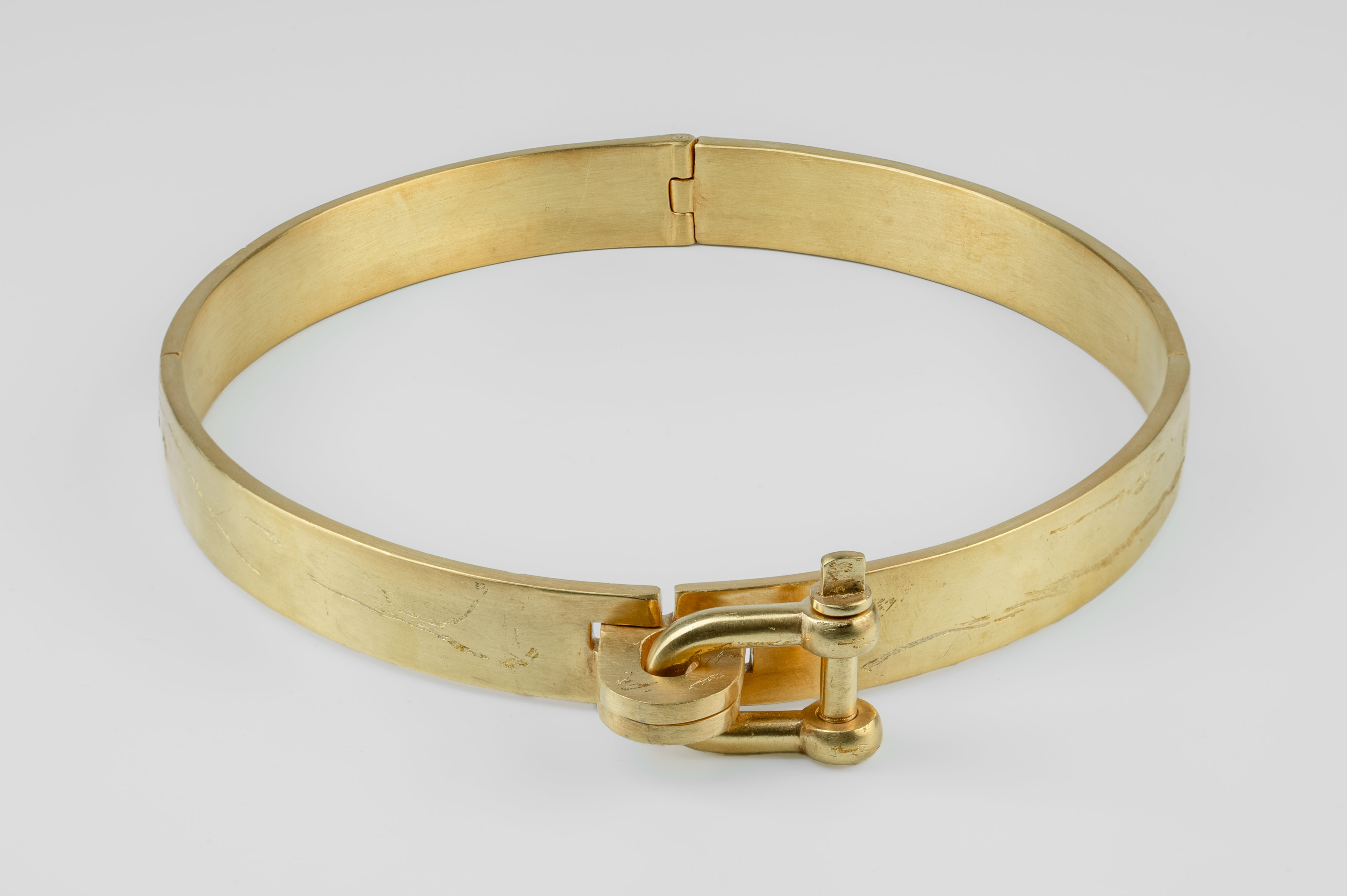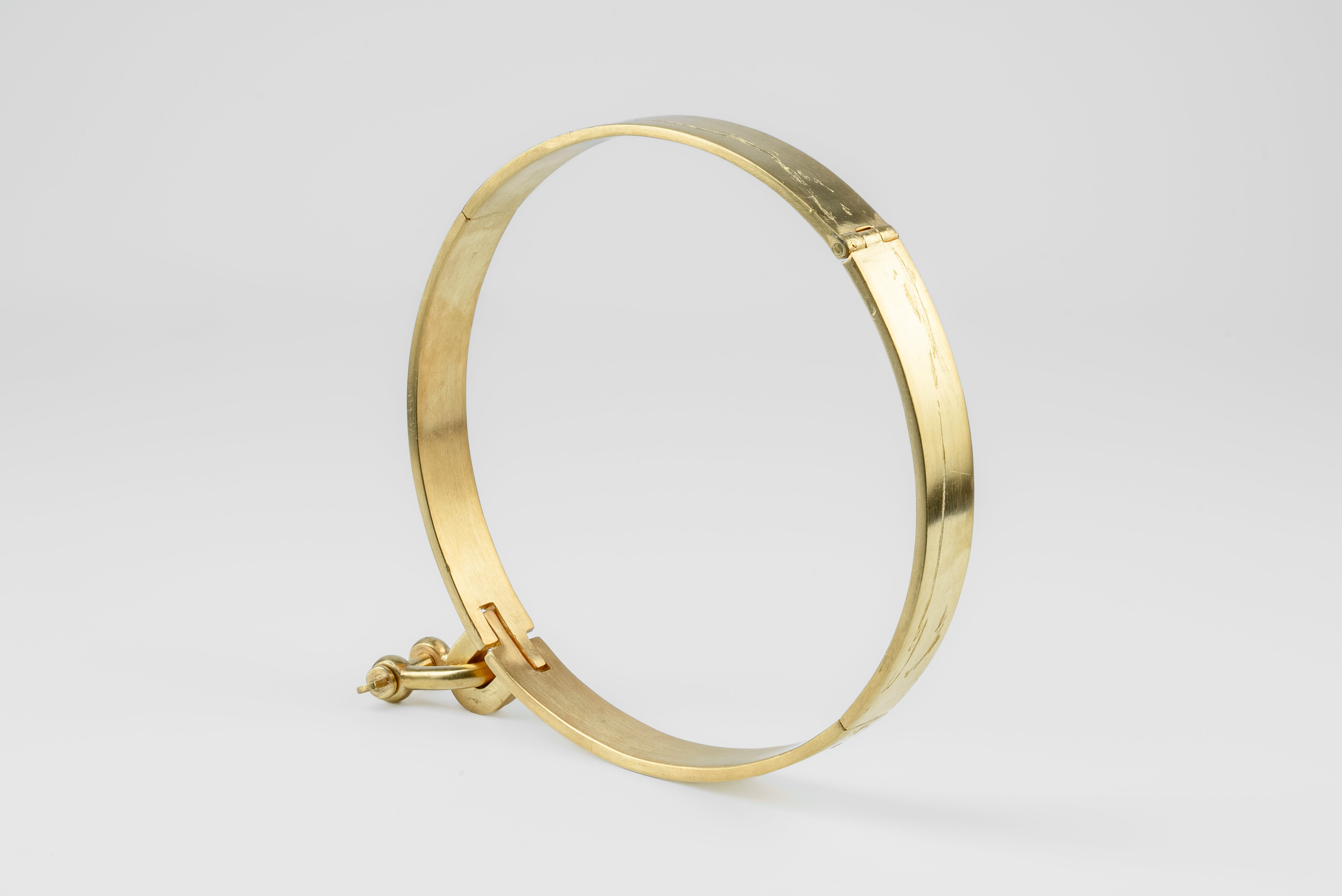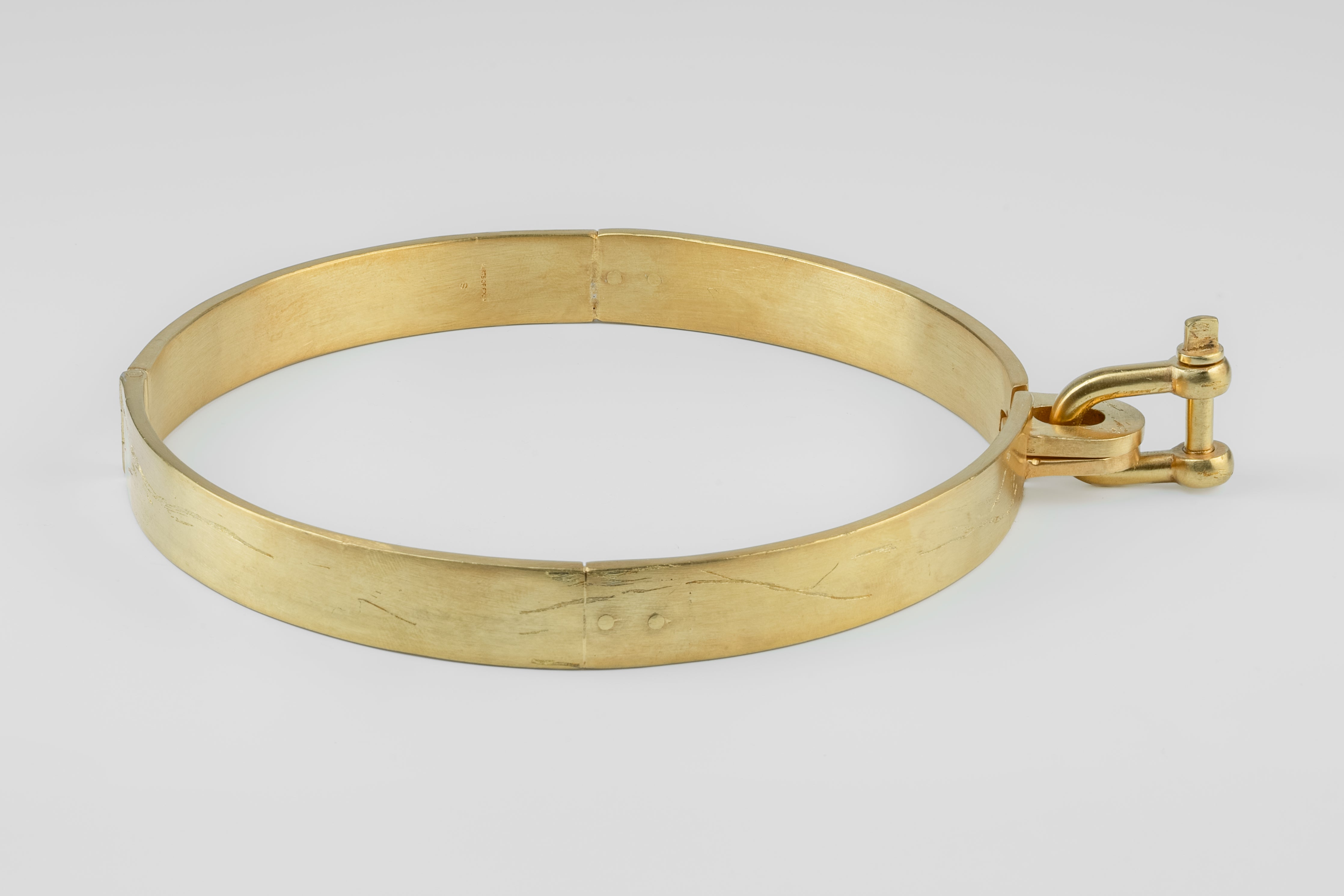 Colors: AG: Acid Gold. Brass substrate is electroplated with 18k gold and then dipped into acid to create the subtly destroyed surface. The concentration of the plating solution, air temperature and time in the acid bath all play integral roles in the final result and exist in a delicate balance. No two items are the same and these nuances / variations should be seen as a characteristic of the product.