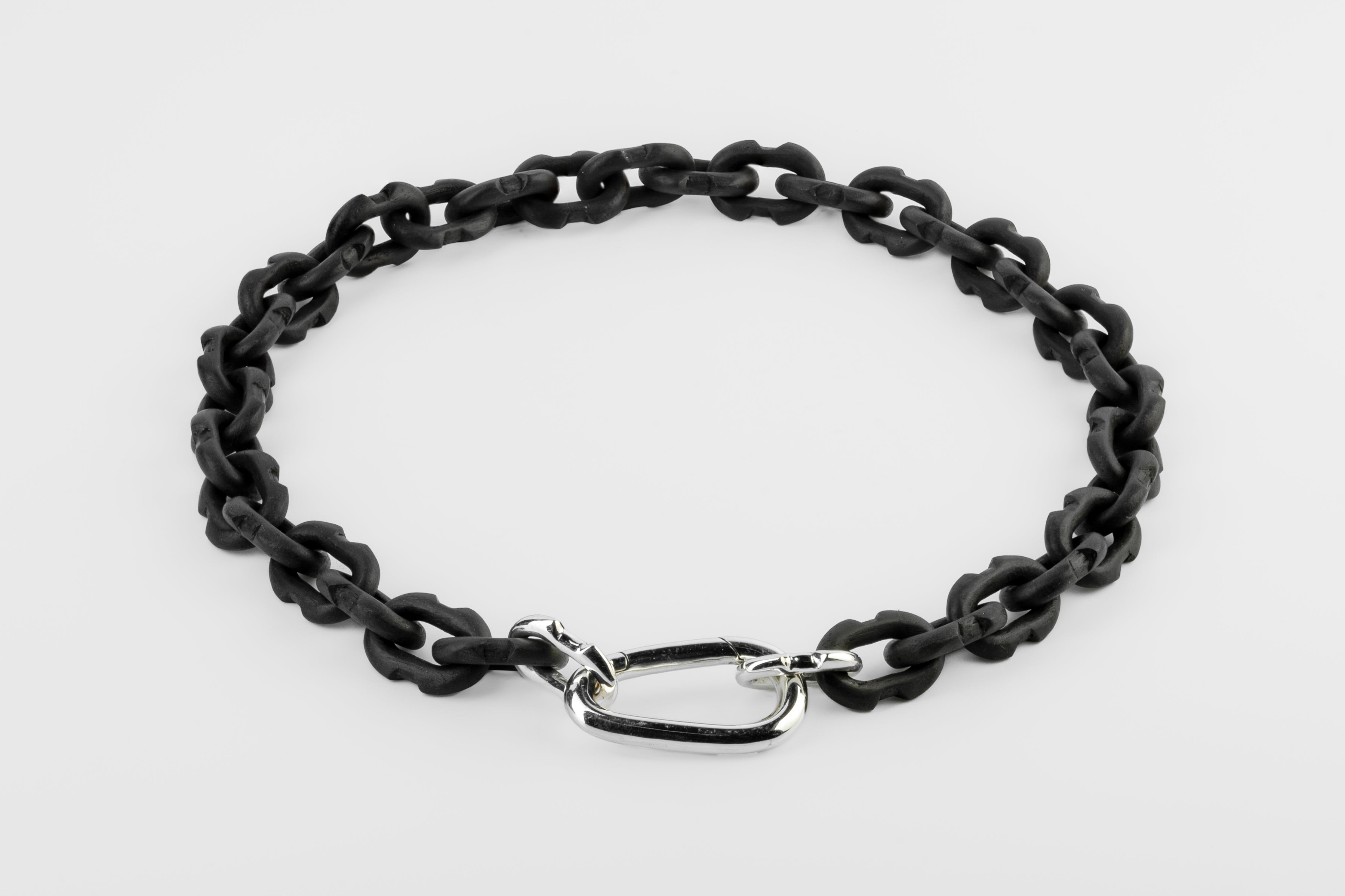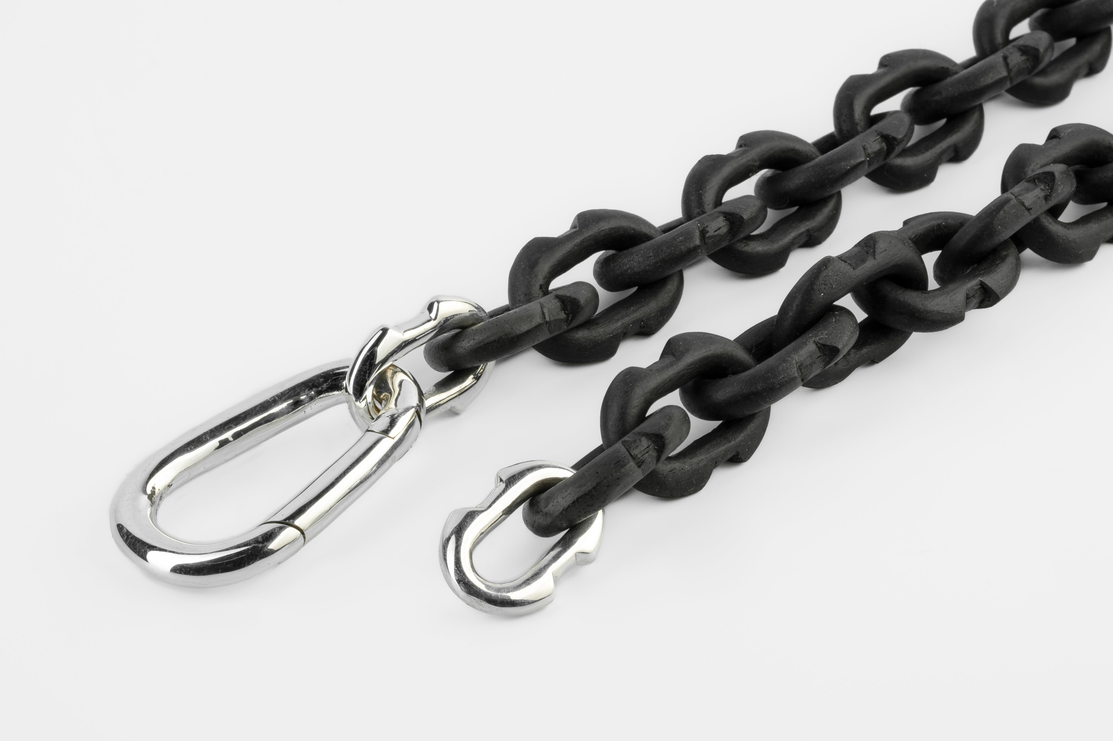 All organic chain is carved by hand. In the case of the chains made of wood, they are absolutely seamless; carved from a single long slab of wood (see link). Chains made from bone, horn and coral are modeled and constructed into chain links.