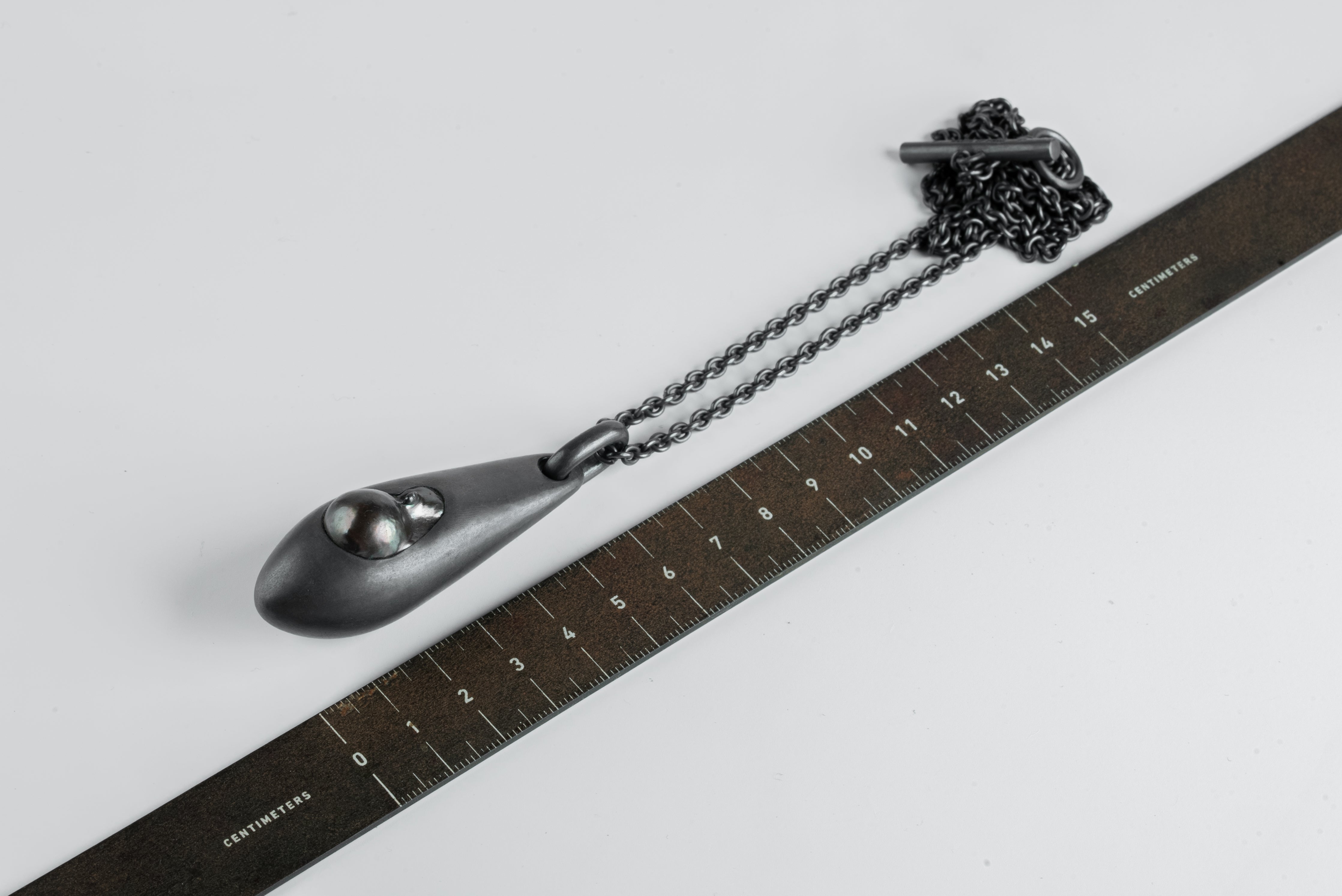Chrysalis Necklace (Cremaster Emergence, Black Rainbow Pearl, KA+KPRL)